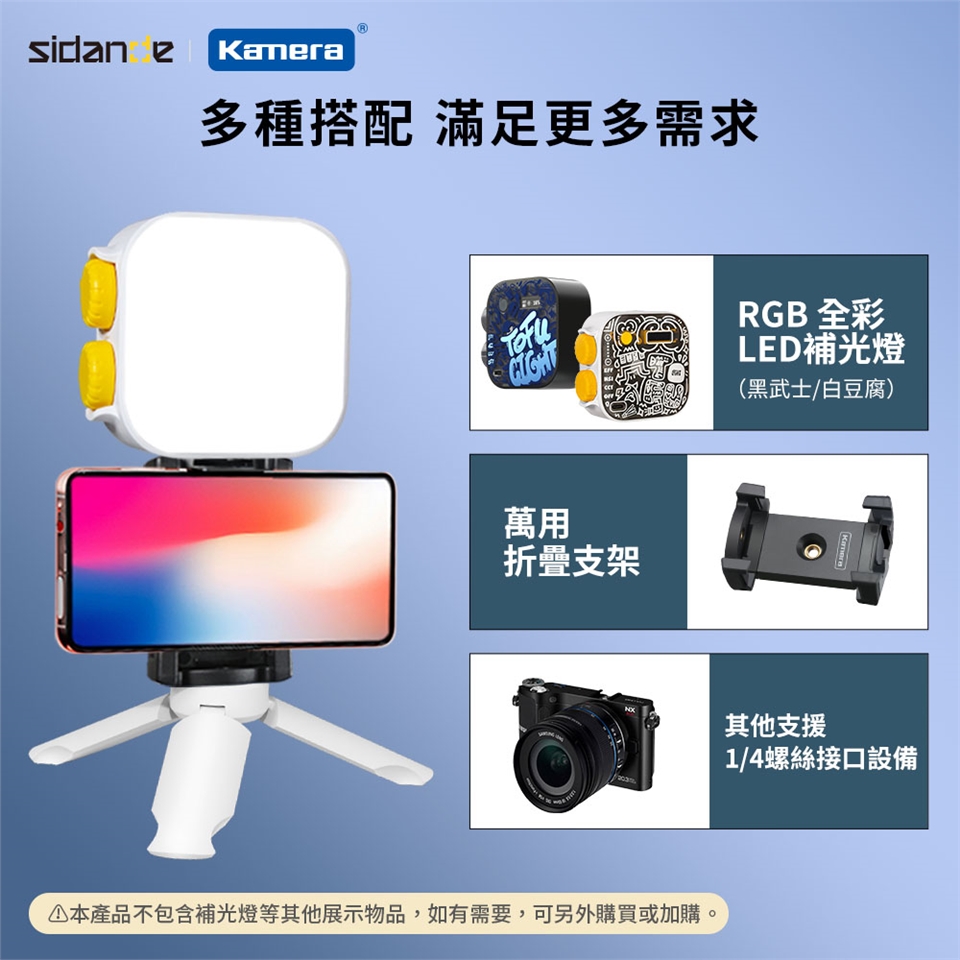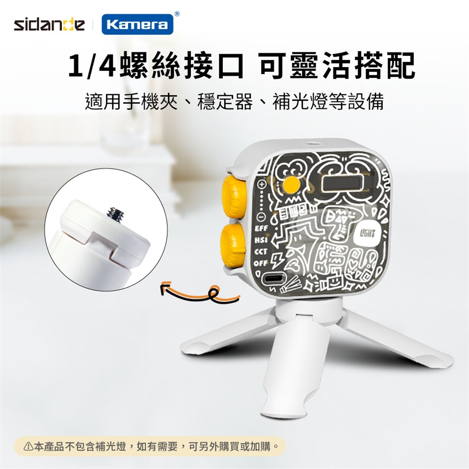- 通用型1/4螺絲接口:適用手機夾、穩定器、補光燈等設備。