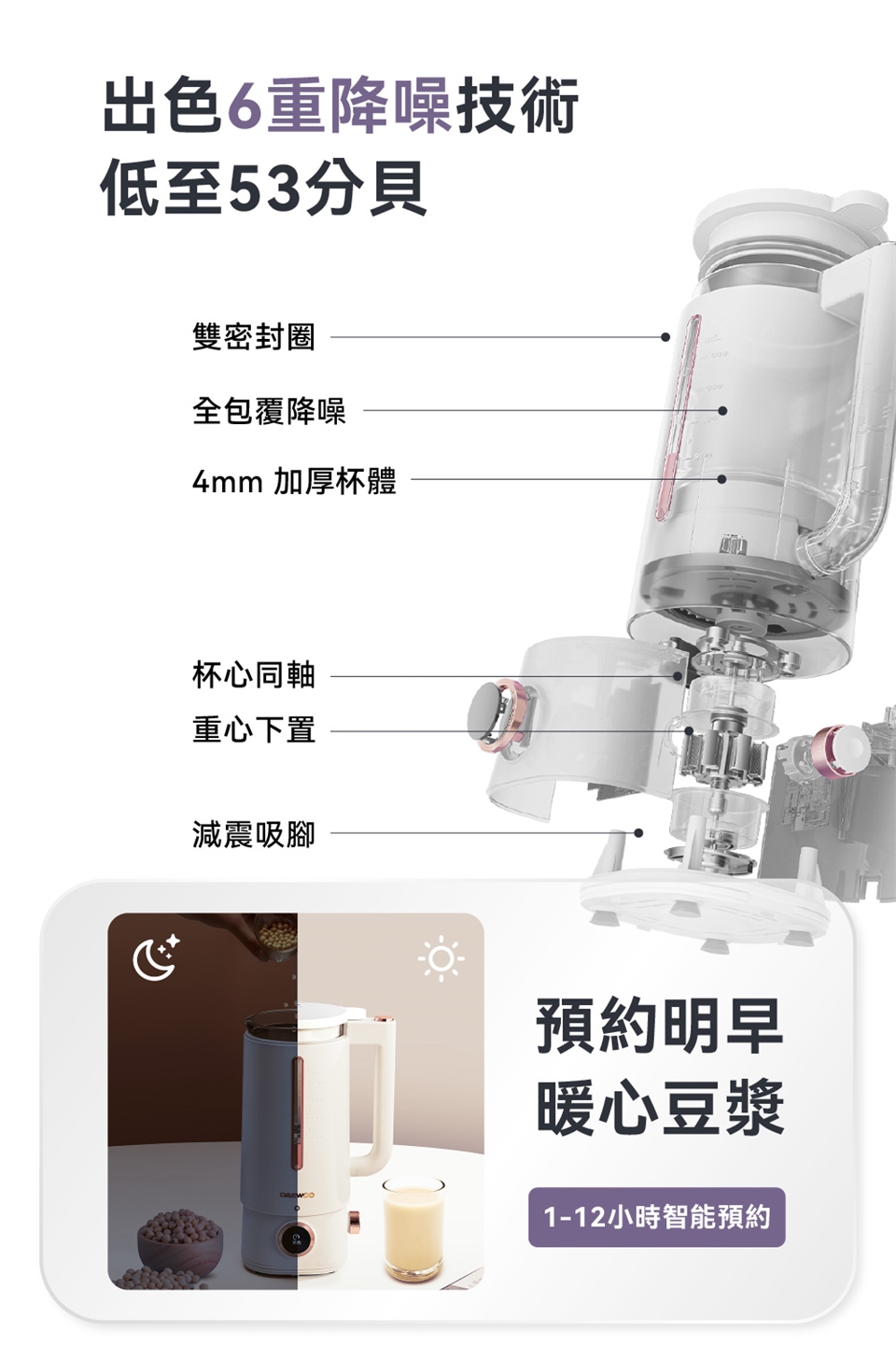 ◆1-12小時智能預約,睡前預約明早暖心豆漿。