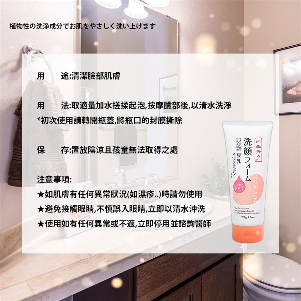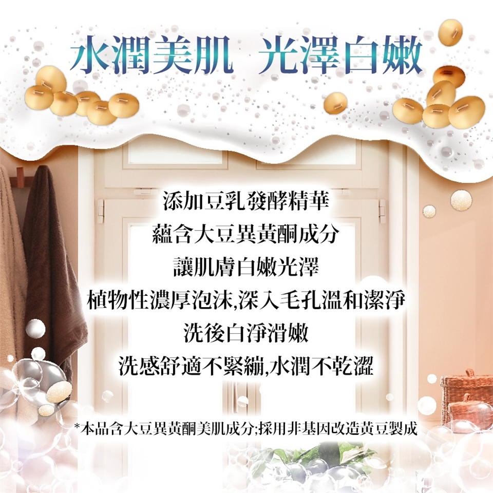 ◆添加豆乳發酵精華,蘊含大豆異黃酮成分,讓肌膚白嫩光澤。