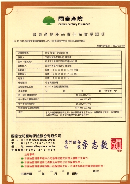 ►已保5000萬產品責任