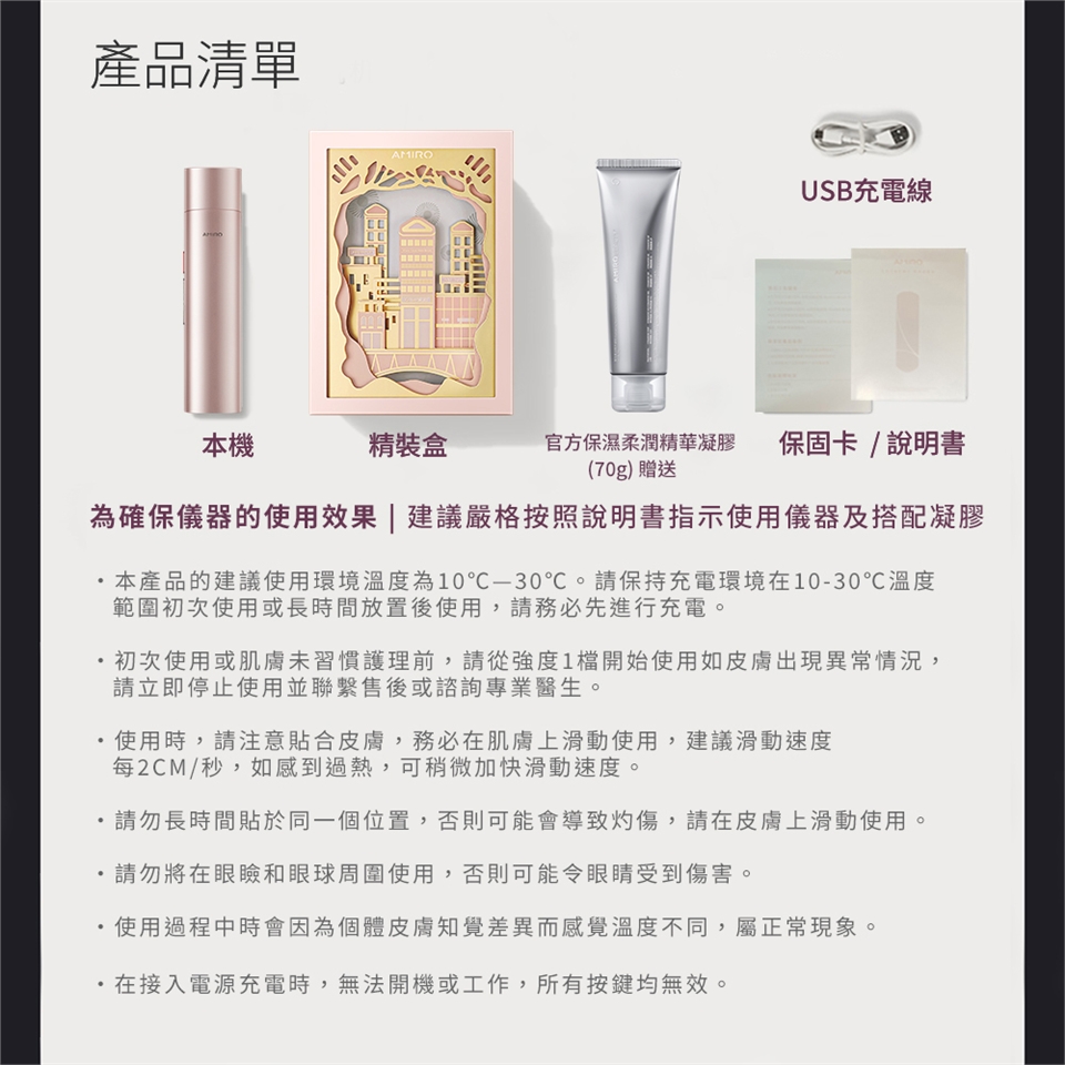 產品淨重:210g | 配件:說明書,本機,Type-C充電線,贈送保濕凝膠70g