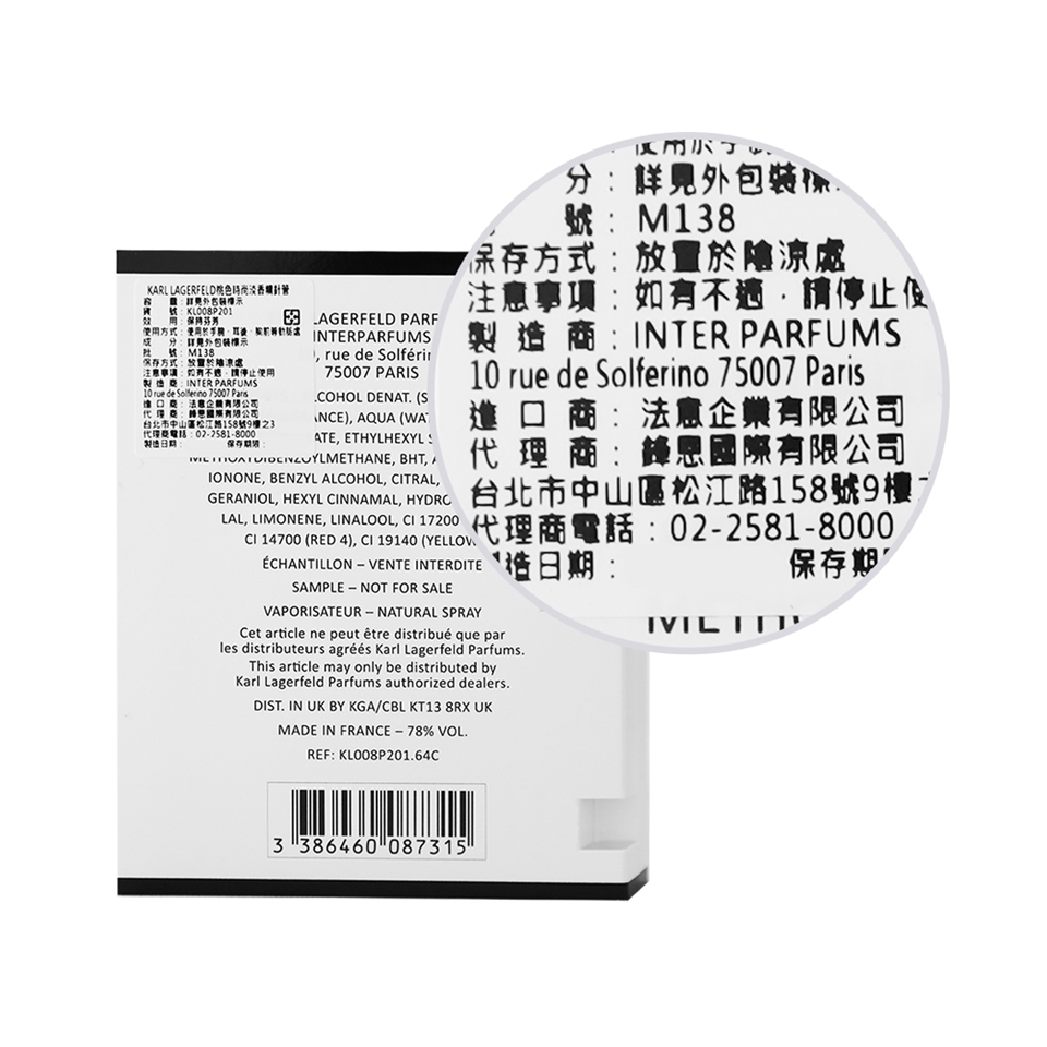 中文品名:KARL LAGERFELD 桃色時尚淡香精(2ml)X2 EDT-隨身針管試香