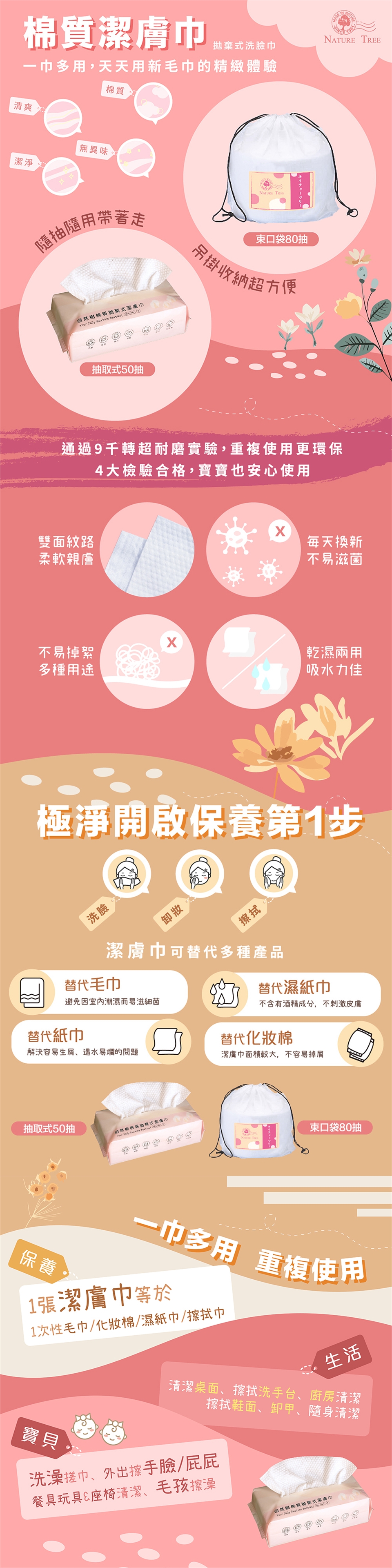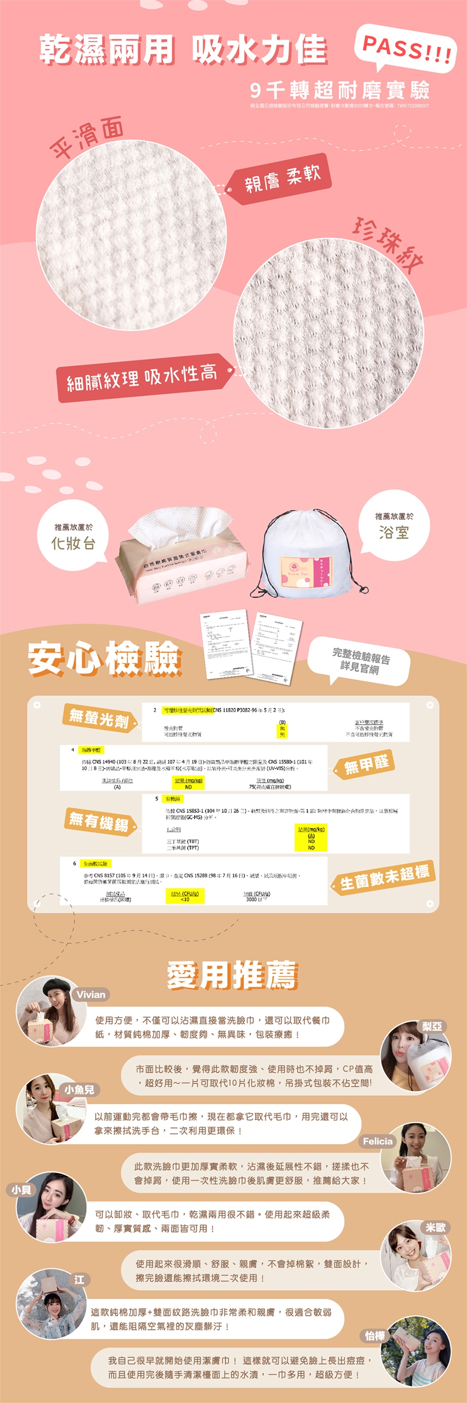 乾濕兩用,可使用於多種清潔需求(洗臉、卸妝、擦拭)