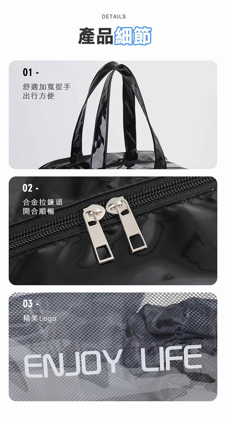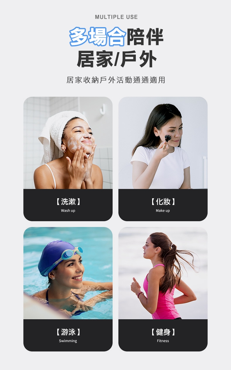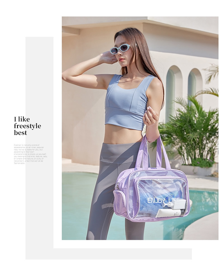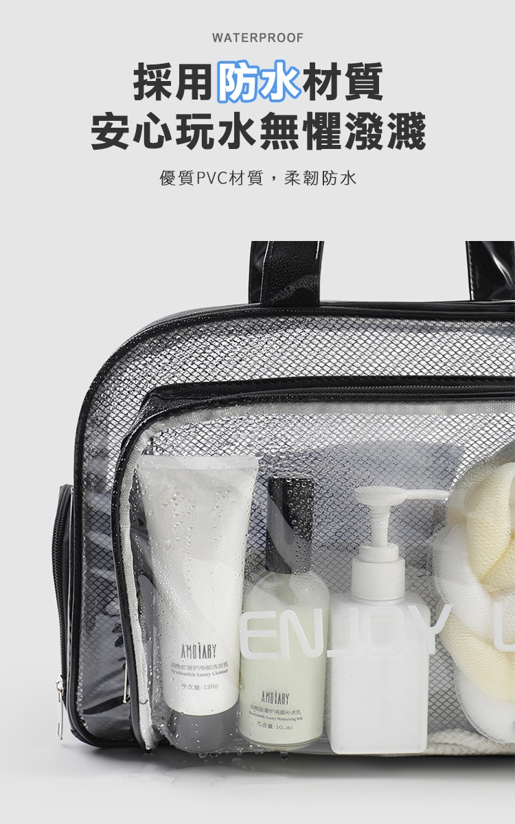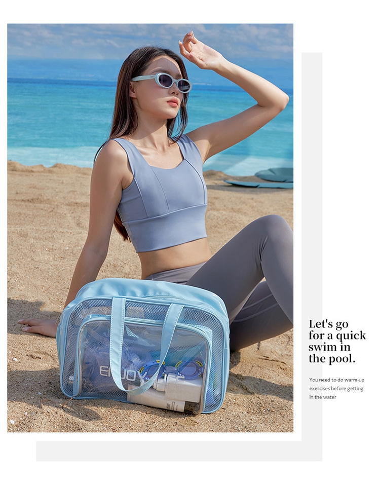 乾濕分層防水健身沙灘游泳包,大款中款兩個恰恰好,大款限定獨立鞋倉,可收納90%的女海灘鞋;中款限定簍空網布,通風瀝水不悶熱;兩包款皆採用防水材質,兩格設計可乾濕分離收納,讓您無懼玩水,水上活動帶著走!