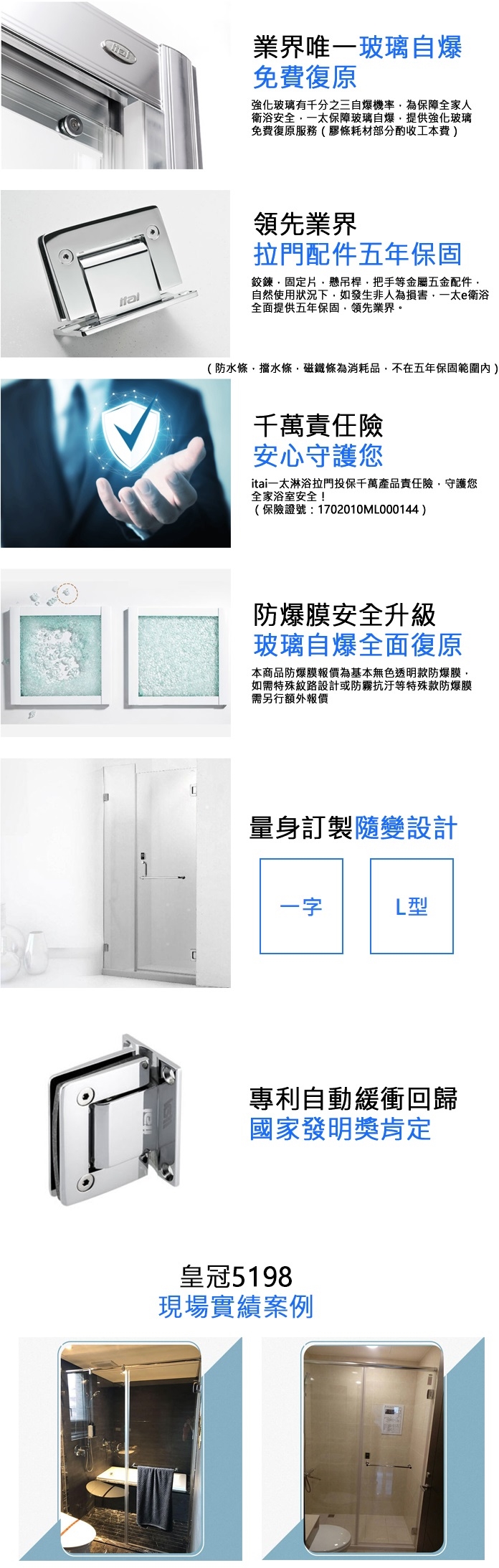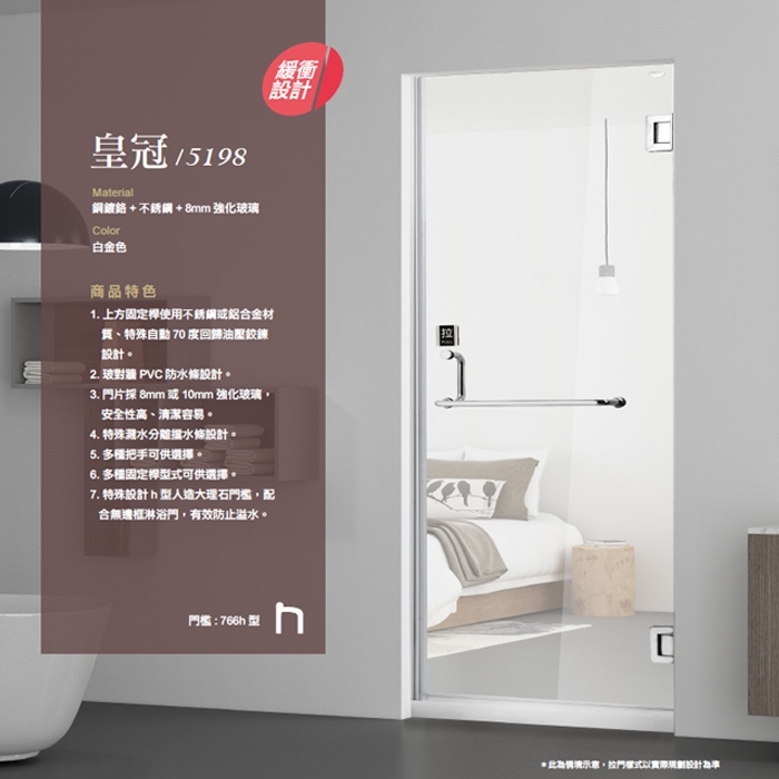 ◆ 型式:皇冠5198 一字型單開門+固定面 / 強化玻璃-10mm X1入