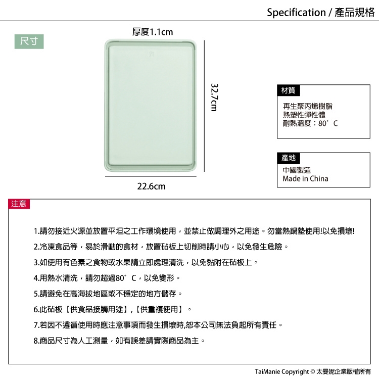 6.此砧板【供食品接觸用途】,【供重複使用】。