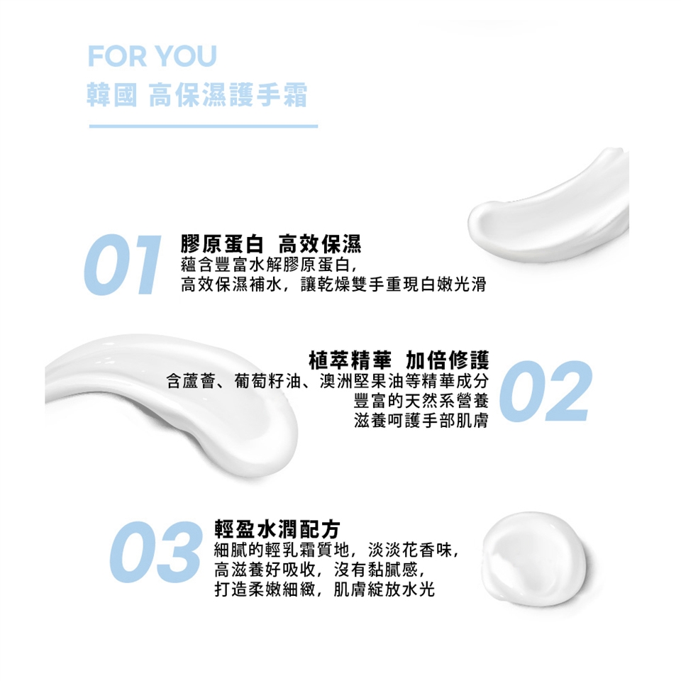 - 韓國植萃配方,添加水解膠原蛋白,為肌膚保濕補水,重現白潤光滑