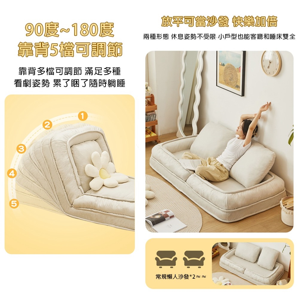 靠背五檔可調節 90-180°大角度調節