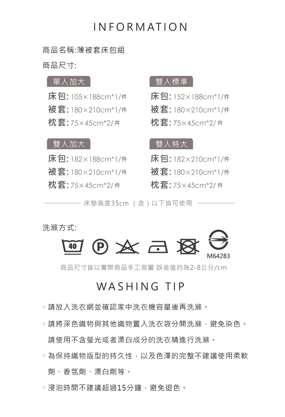 ※如商品因試睡、洗滌等等...產生異味與明顯使用痕跡 恕不接受退換貨。