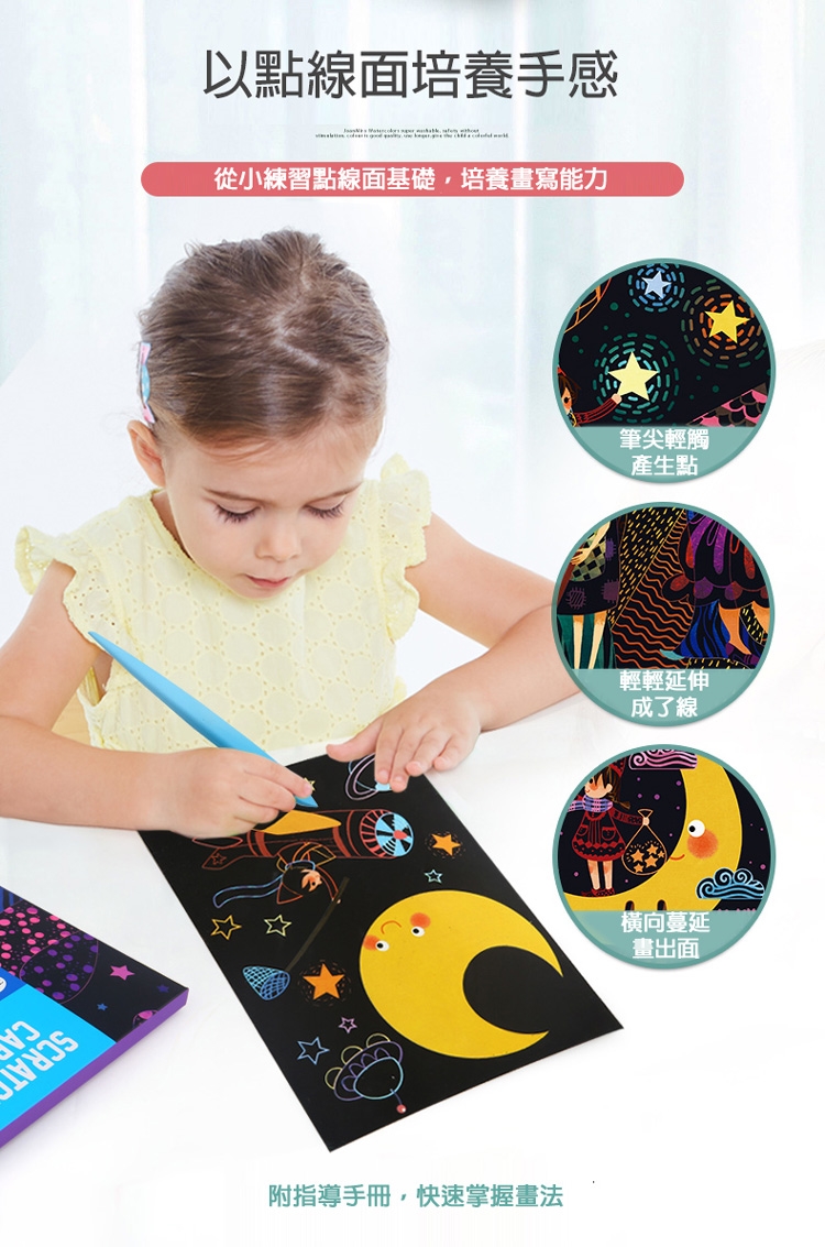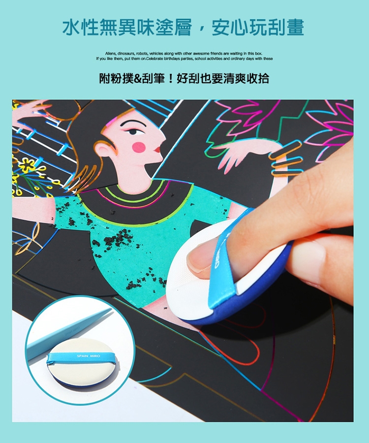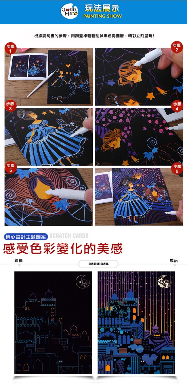 【產品規格】刮畫圖紙6張、說明書、刮畫筆、粉撲