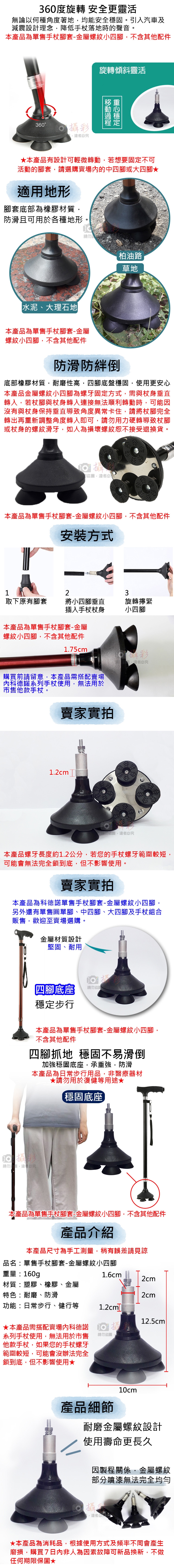 ★★本產品為單售手杖腳套-金屬螺紋小四腳,另有單售圓單腳、中四腳、大四腳及手杖組合販售,歡迎至賣場選購★★
