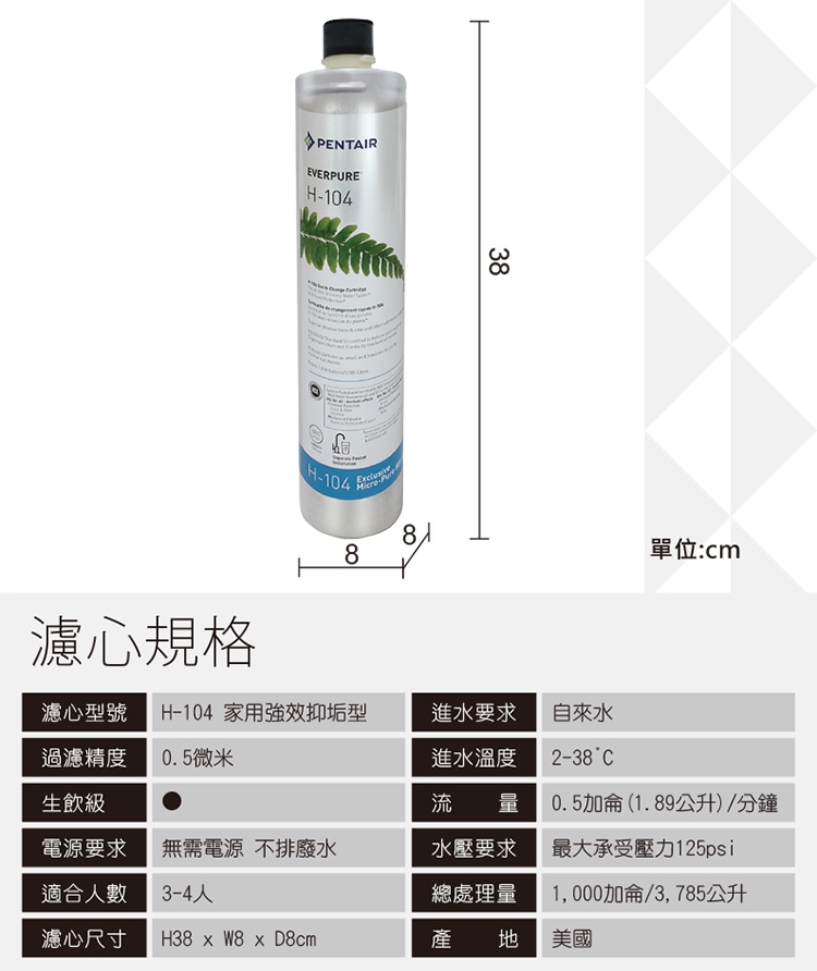 【PENTAIR濱特爾】EVERPURE家用淨水濾芯H-104