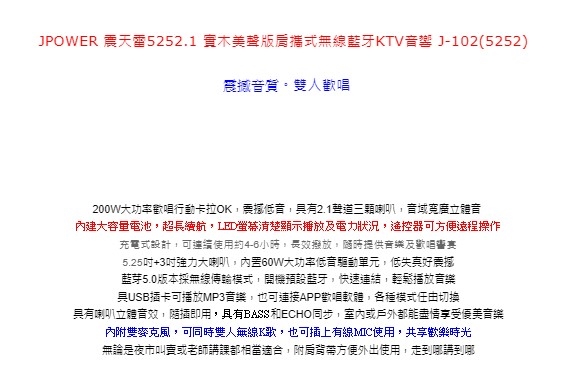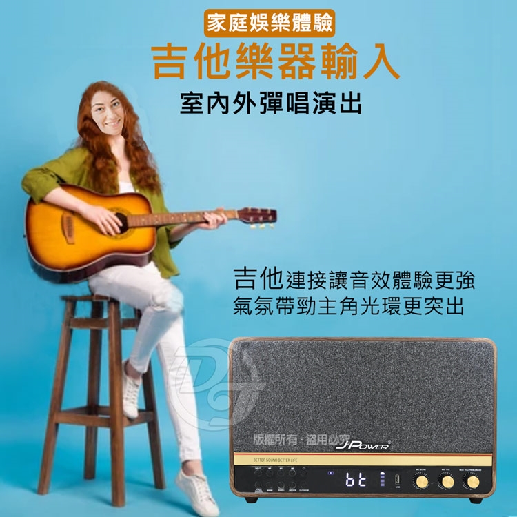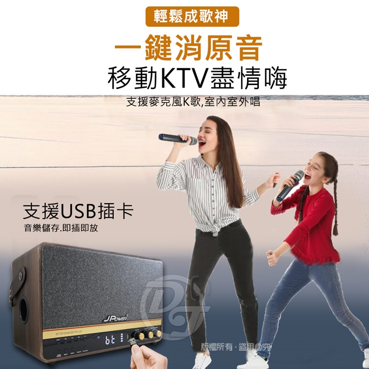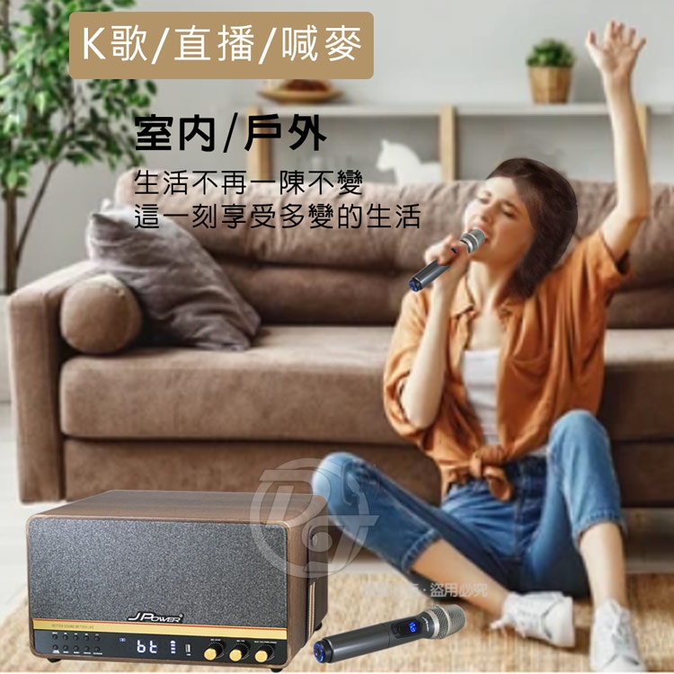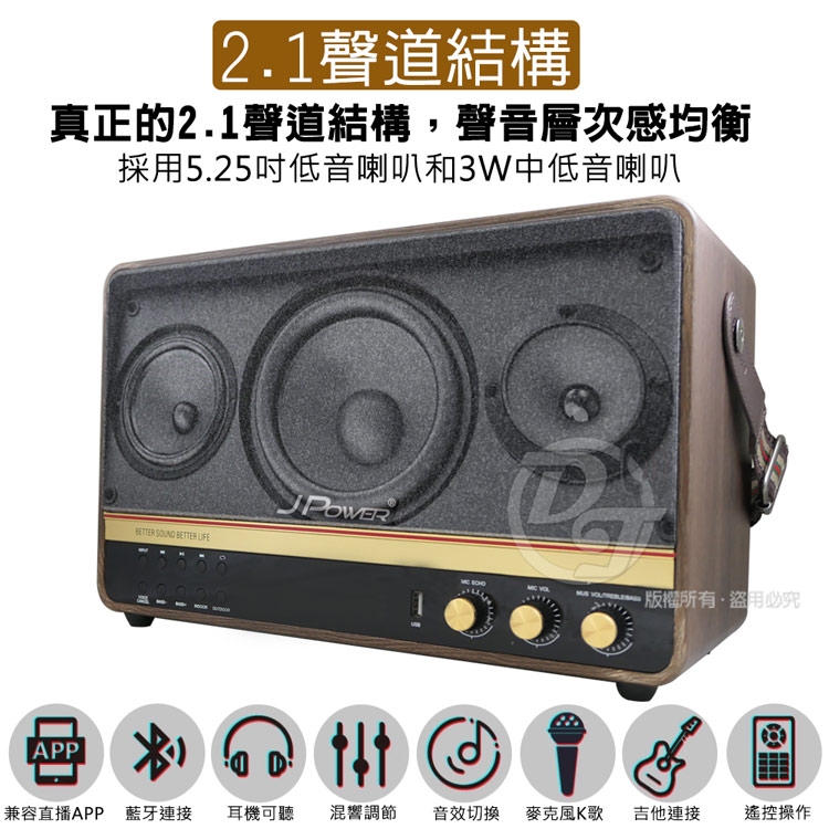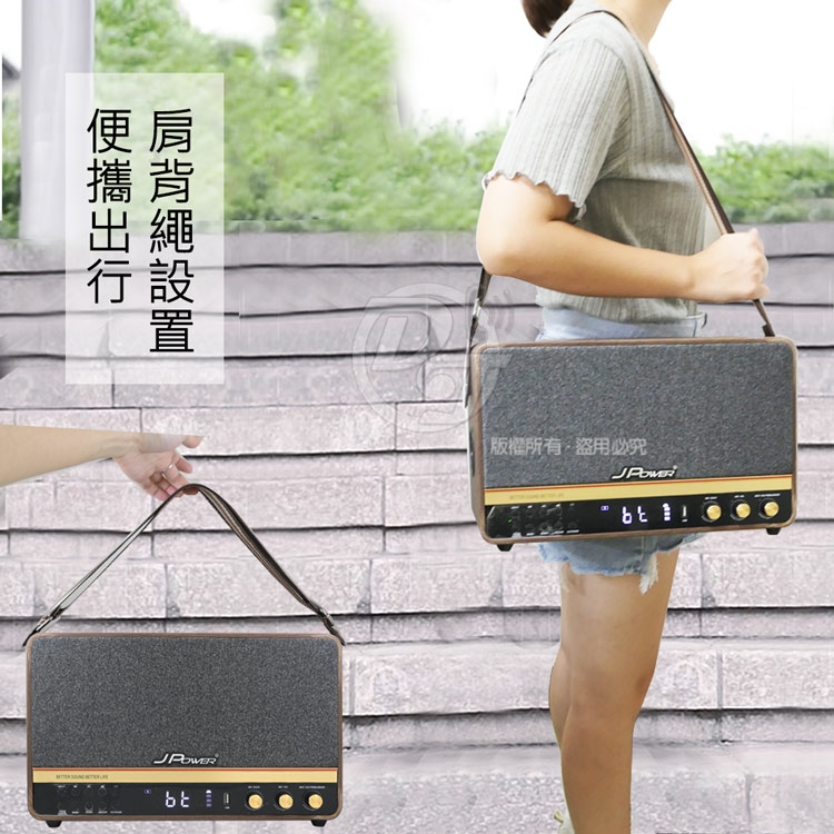 ◎品牌:JPOWER 震天雷5252.1實木美聲版肩攜式無線藍牙KTV音響 J-102(5252)