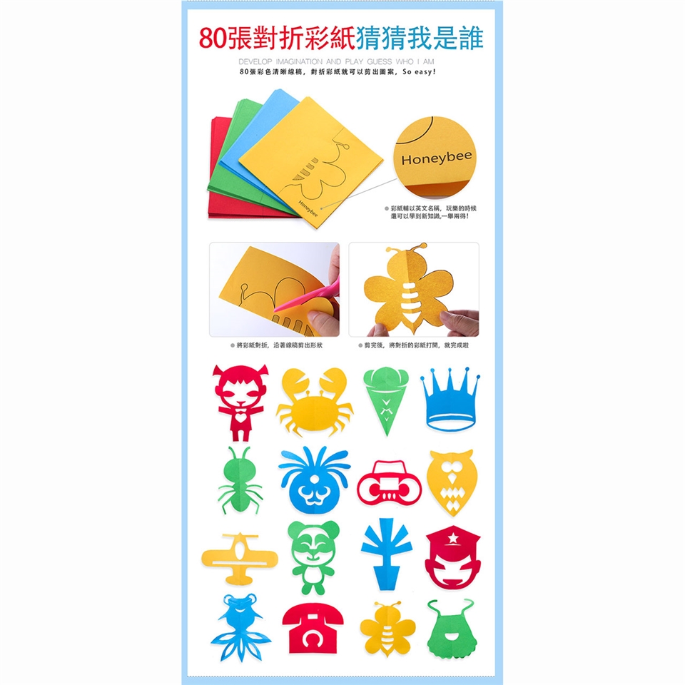 ➤80張對折彩紙,對折就能剪出圖案