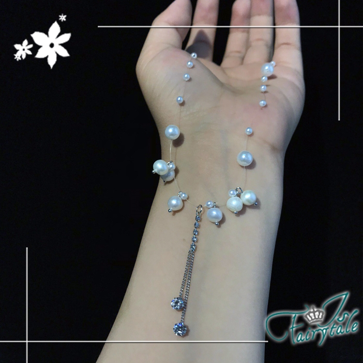 珍珠如同人魚的氣泡般,隨意滿佈在魚線上,