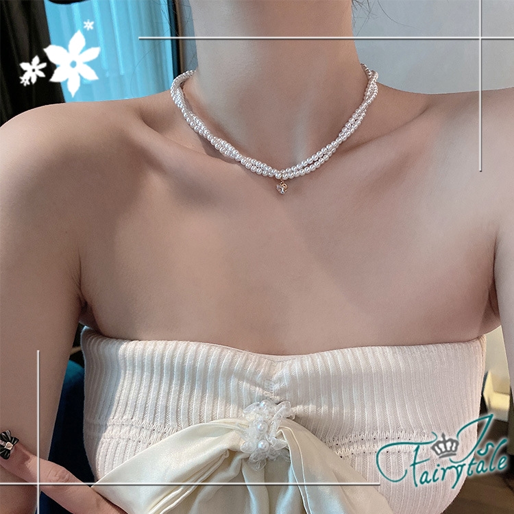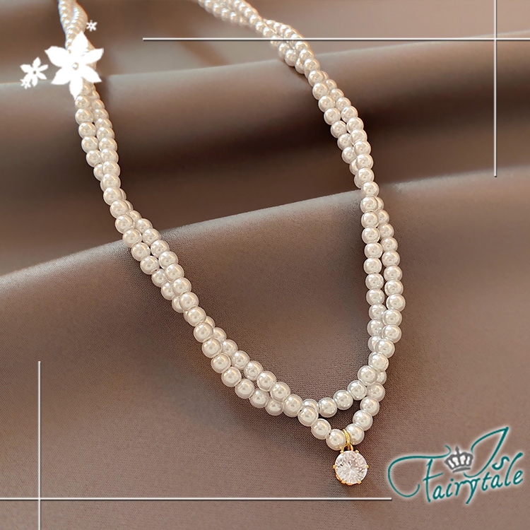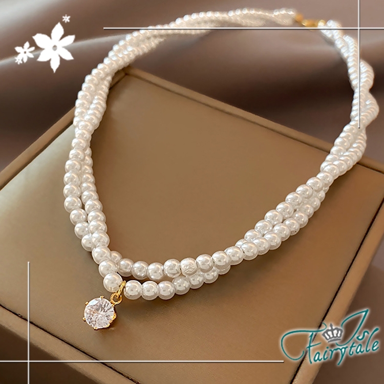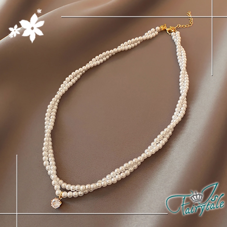 搶眼璀璨單鑽造型,玻璃珍珠短頸項鍊,