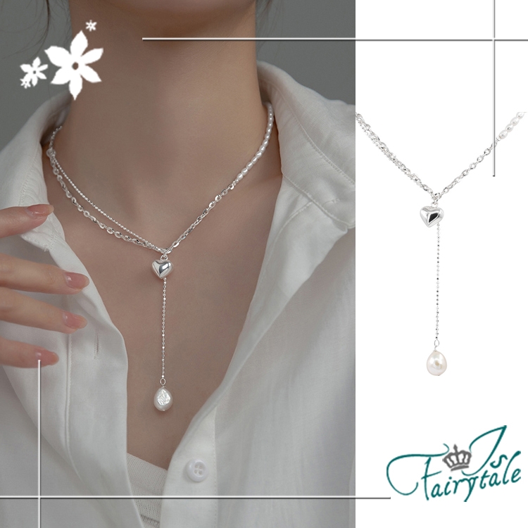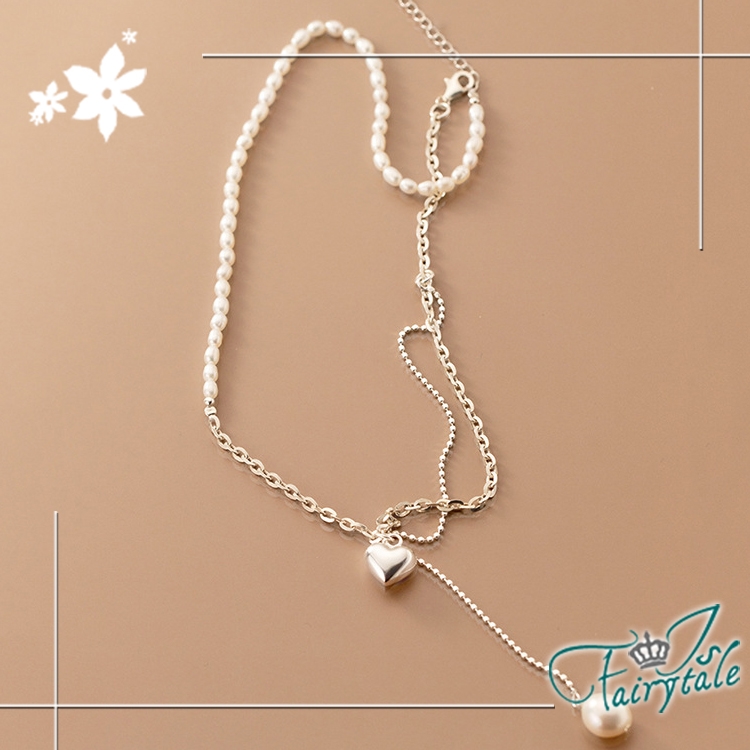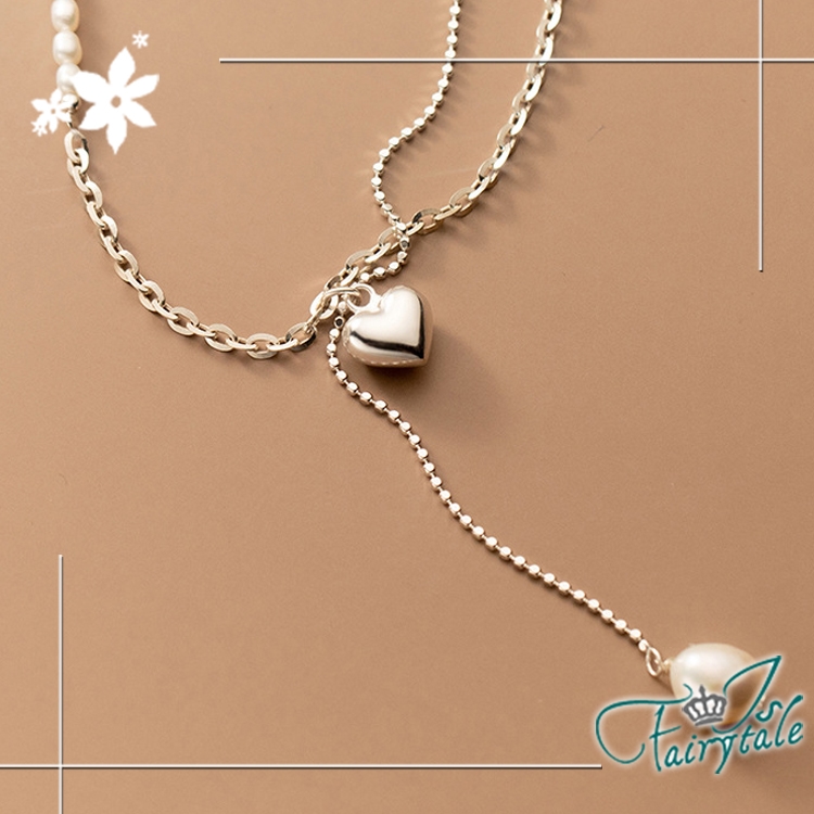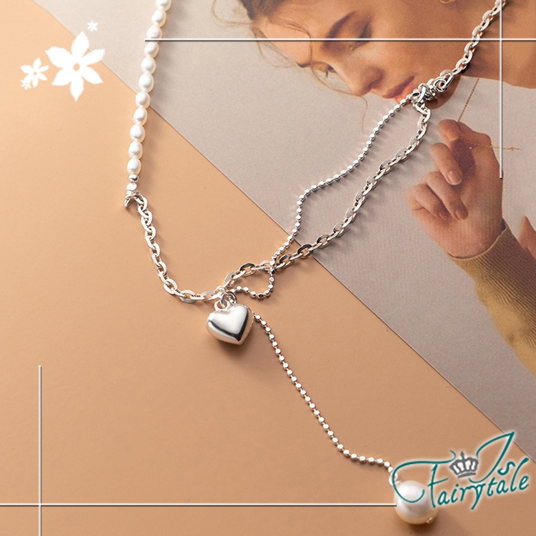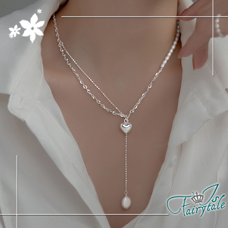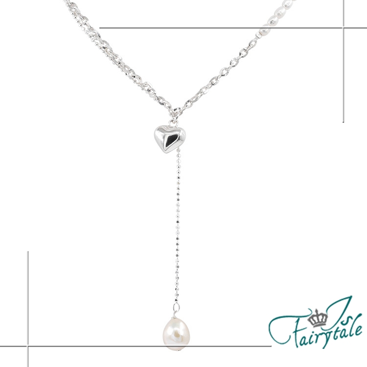 復古甜美愛心珍珠,水滴流蘇造型雙層短鍊,