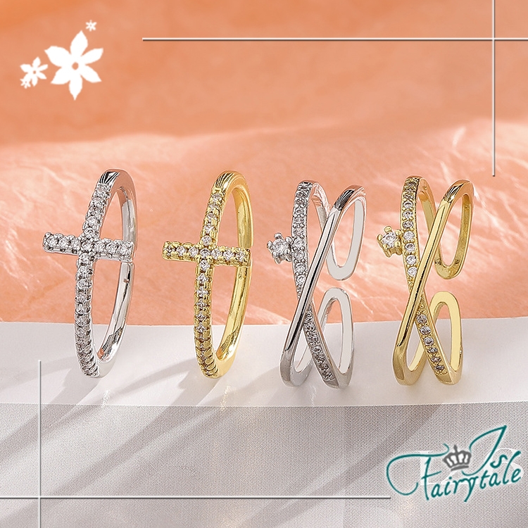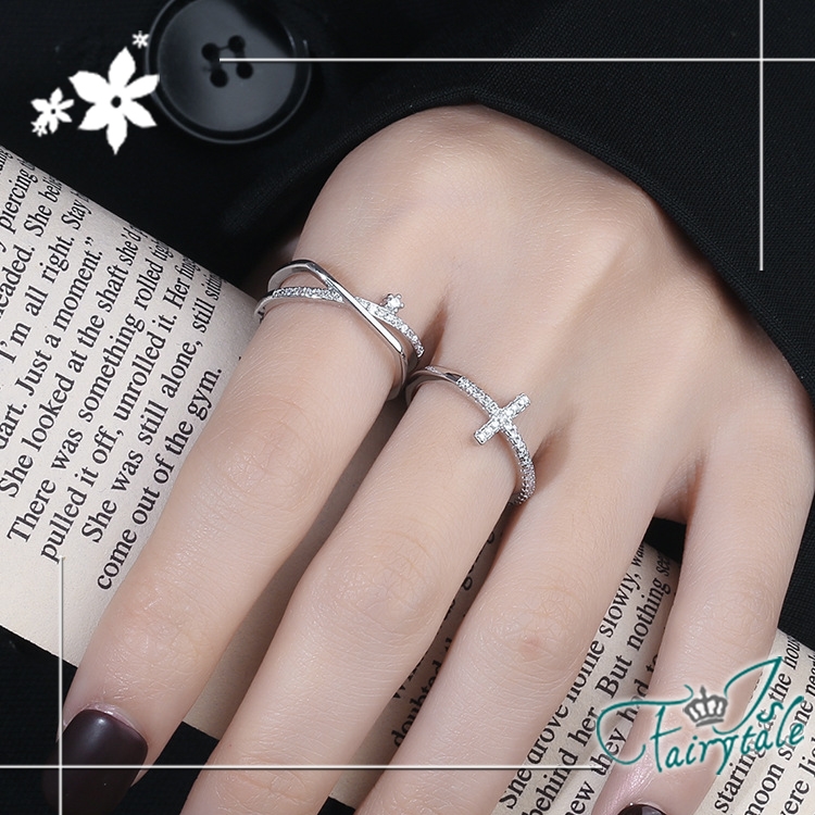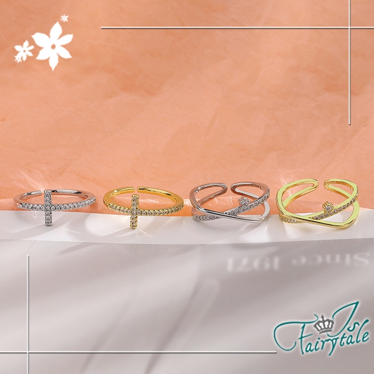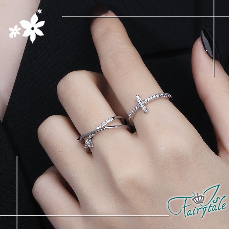 菱角幾何交錯交叉,典雅素色細彈性戒指環,