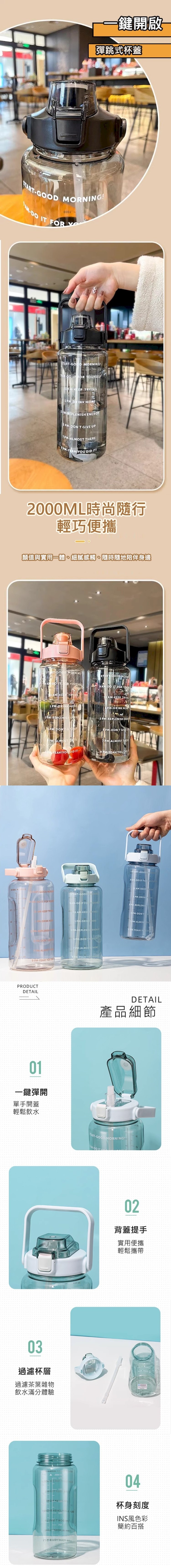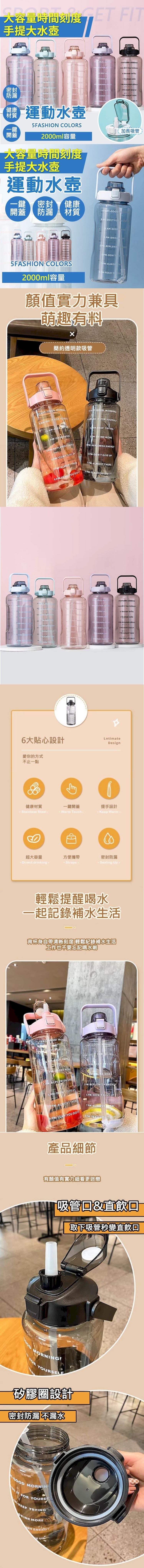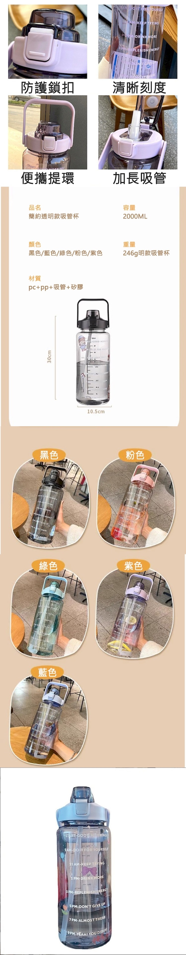 嚴選健康材質,飲水無異味,加大容量,隨時補充水份,時刻表設計,記錄刻水量,安全鎖扣,一鍵彈蓋,單手可開蓋,輕鬆暢飲,內置矽膠圈,密封防漏,直飲口/吸管口兩用,杯蓋提手,實用便攜,大寬口設計,方便清洗