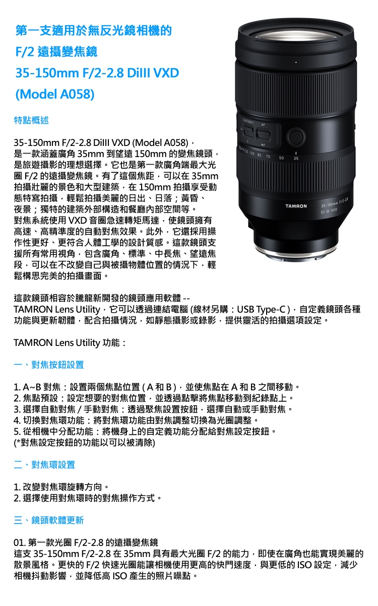 TAMRON 公司貨享有12個月保固。 詳細以官網公告為主http://www.tamron.com.tw/home.html 《原廠服務專線 02-2321-8258》