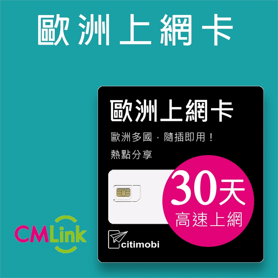- 歐洲43國30天無限上網卡