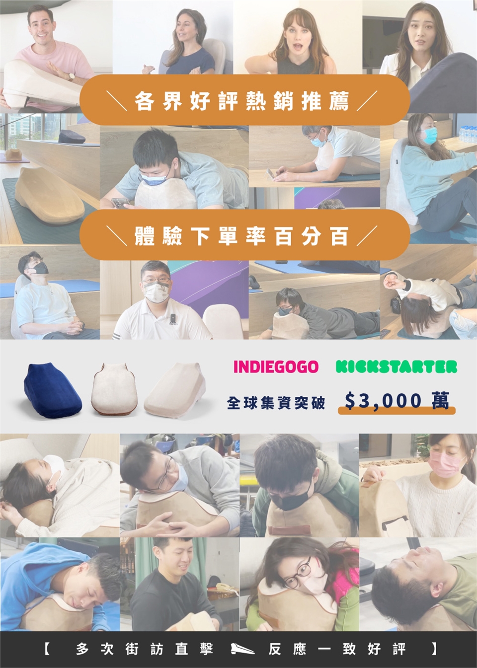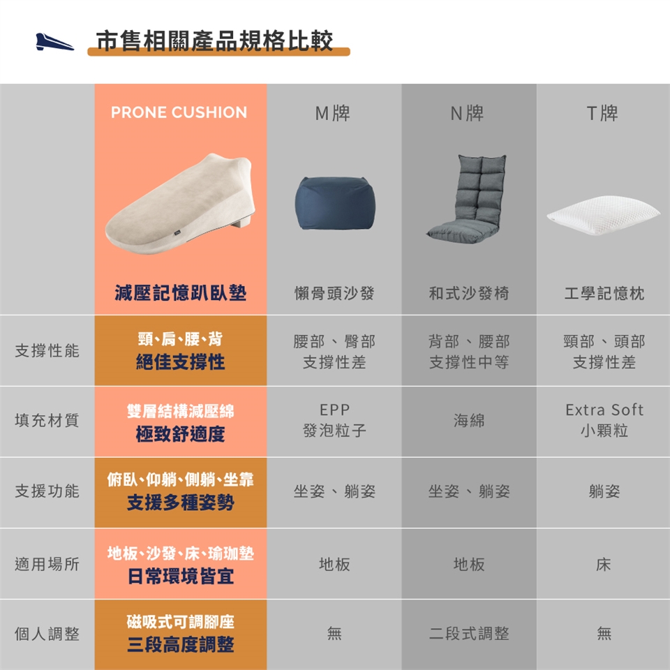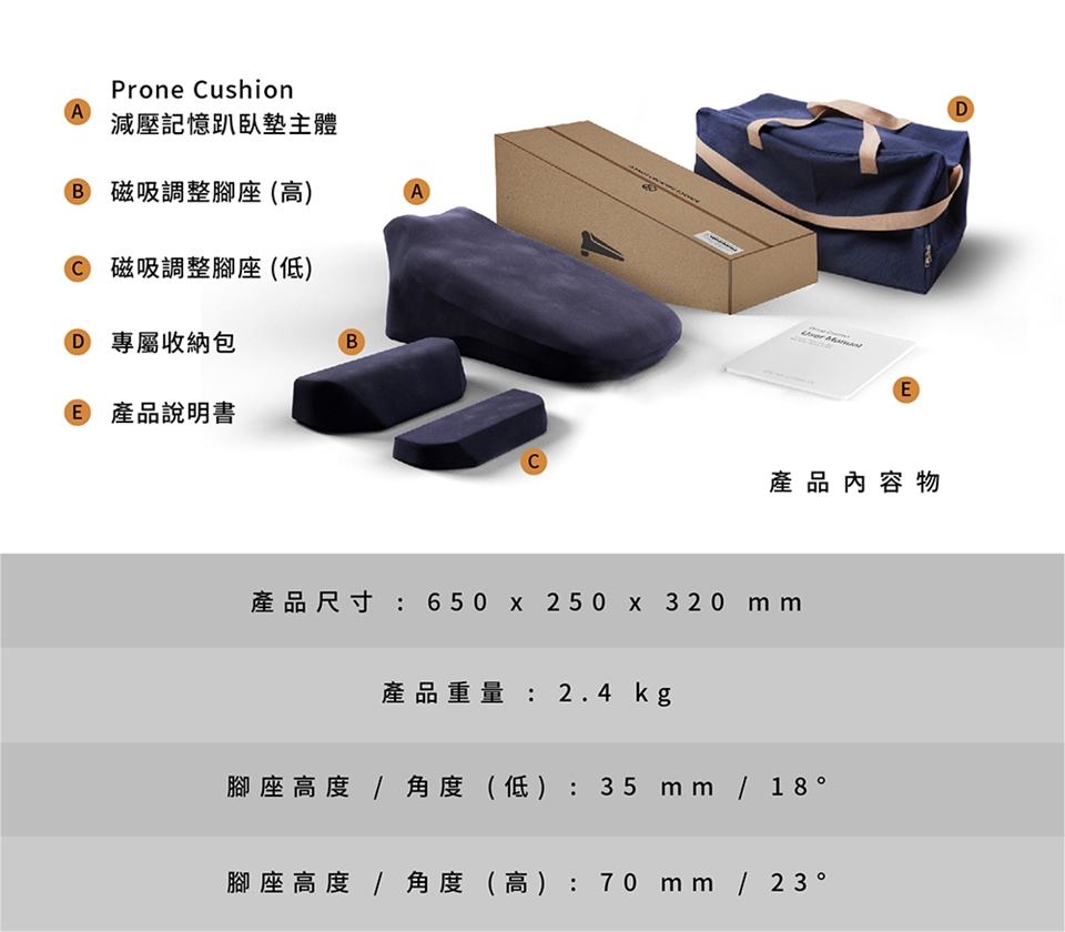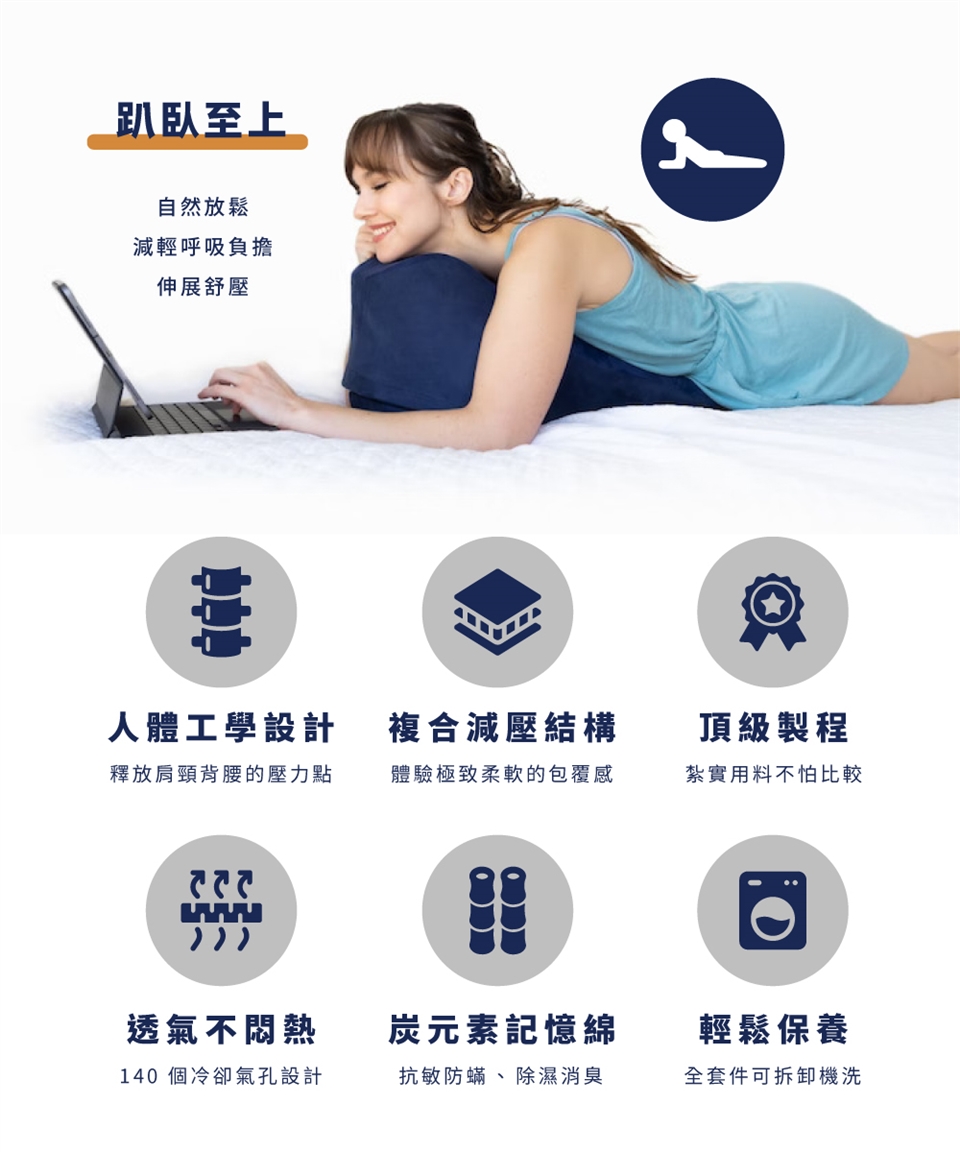 產品的構思到生產,我們花了3年多的時間,進而推出全球第一款,專為俯臥而設計的人體工學墊,減緩釋放來自於肩、頸、背、腰部累積的壓力,絕佳的舒適度,適合需要放鬆的你。
