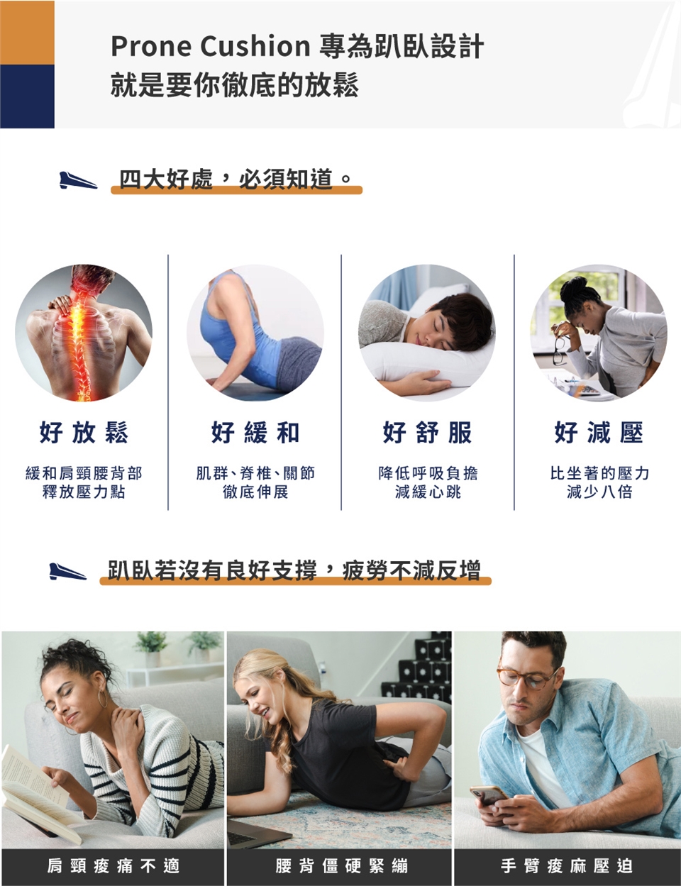趴臥墊是肩頸背腰的最佳伸展台,天天都要來場舒適"趴"!