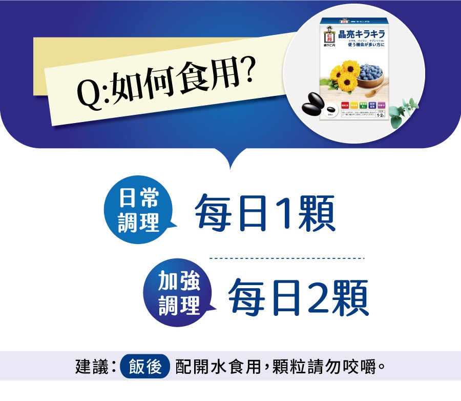 每日1~2粒配開水食用,每日請勿超過2粒,多食無益。