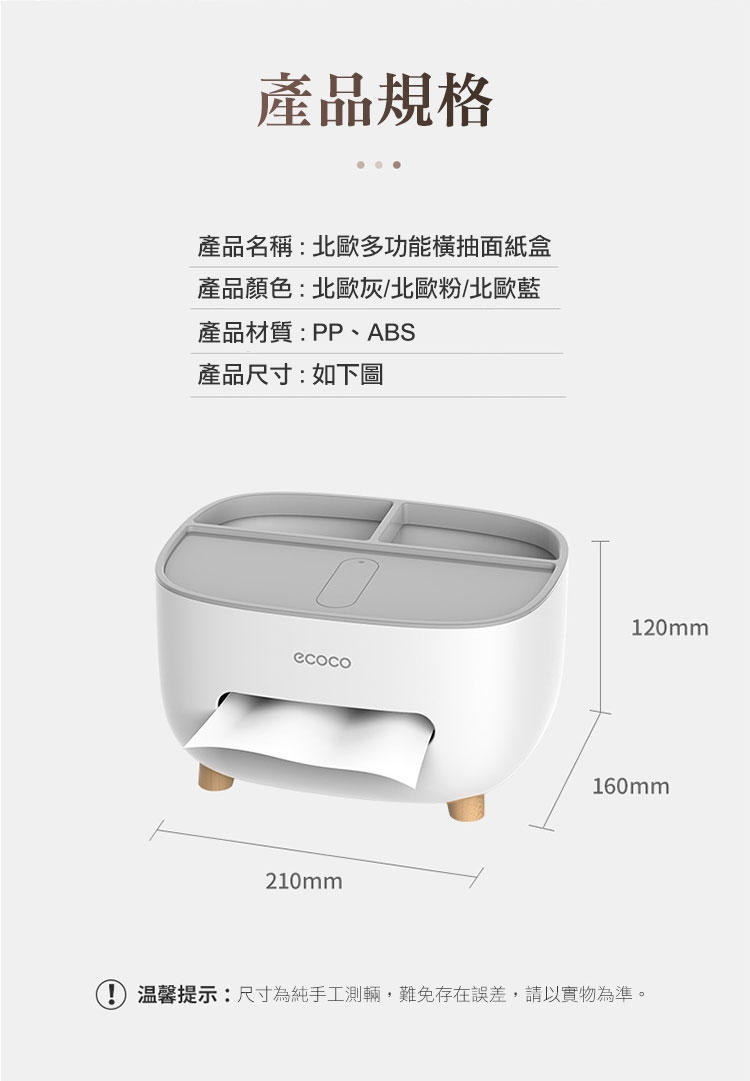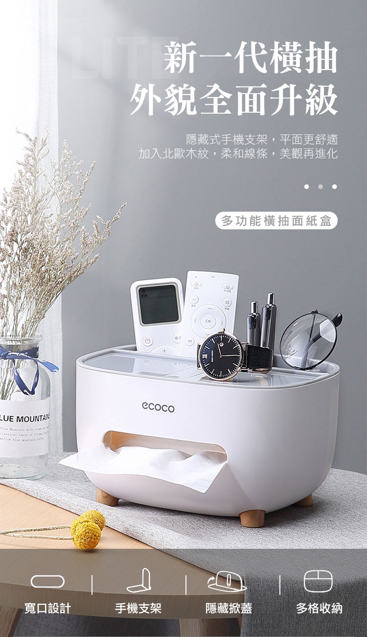 新款北歐多功能橫抽面紙盒,升級北歐風木紋腳架,造型圓潤時尚品味,新隱藏式手機架使用再加分,多功能一體設計,同時可作為置物架、手機支架,還可收納多種小物!橫抽式面紙盒空間不浪費,品味時尚與實用收納兼具的紙巾盒~