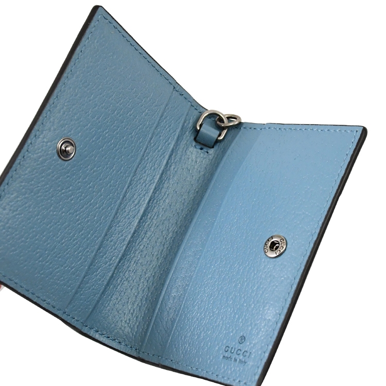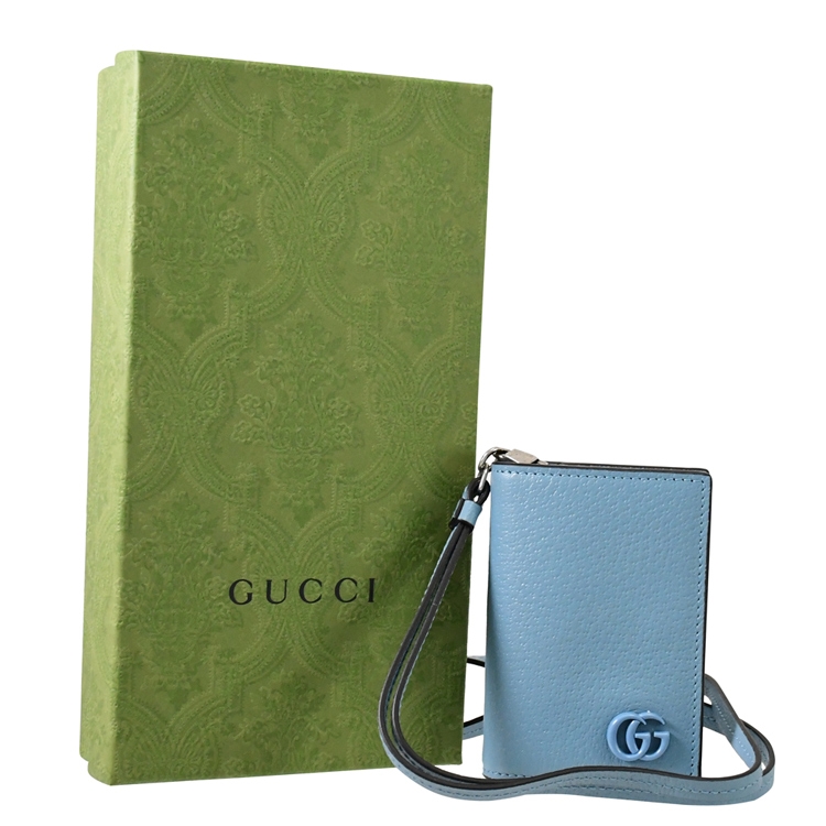 GUCCI 是義大利辨識度極高的品牌,其魅力在台灣持續燃燒,高貴優雅的的熱銷款式,是許多人踏入名牌世界的第一選擇,除了超Hot的熱賣商品持續銷售外,也在新品上不斷創新,GUCCI 專櫃熱銷經典款推新造型頸掛式對開卡夾,採用經典小牛皮搭配GG LOGO,釦式開口/內有4卡片夾層/外1卡片夾層,可放置信用卡、乘車卡等,附1可拆式頸掛帶,實用性設計便於攜帶,小配件在舉手投足都展現自信魅力。