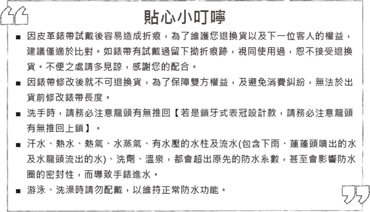 ※為保障商品品質,經佩戴過後不予退換貨,如有不便請見諒