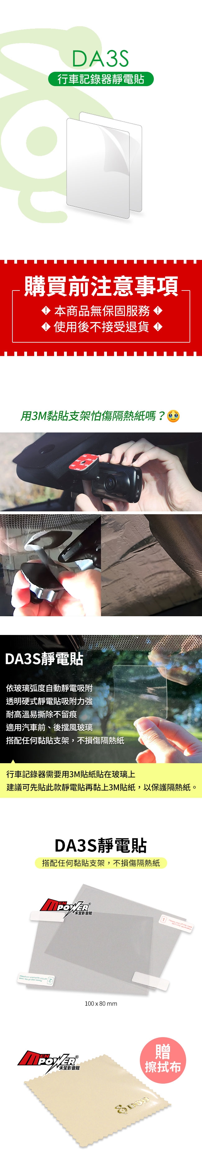 適用族群:行車記錄器需要用3M貼紙貼在玻璃上,建議可先貼此款靜電貼再黏上3M貼紙,以保護隔熱紙。