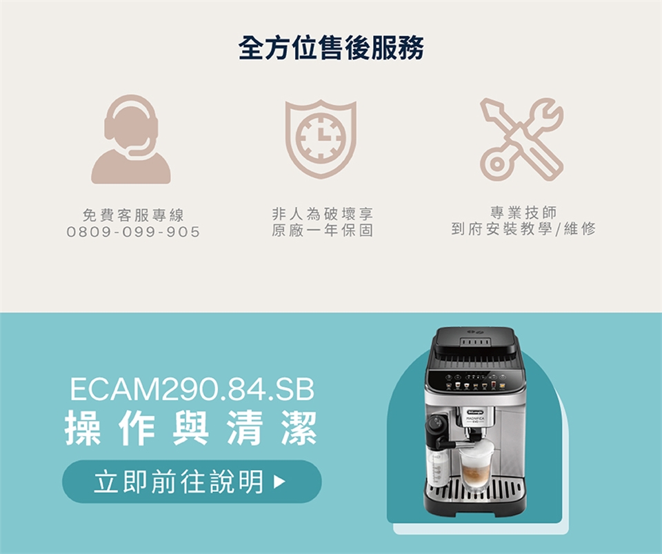 - 咖啡機享有到府安裝服務,商品到貨後,會有專人於三個工作日內聯繫約定安裝教學時間,請勿自行安裝。