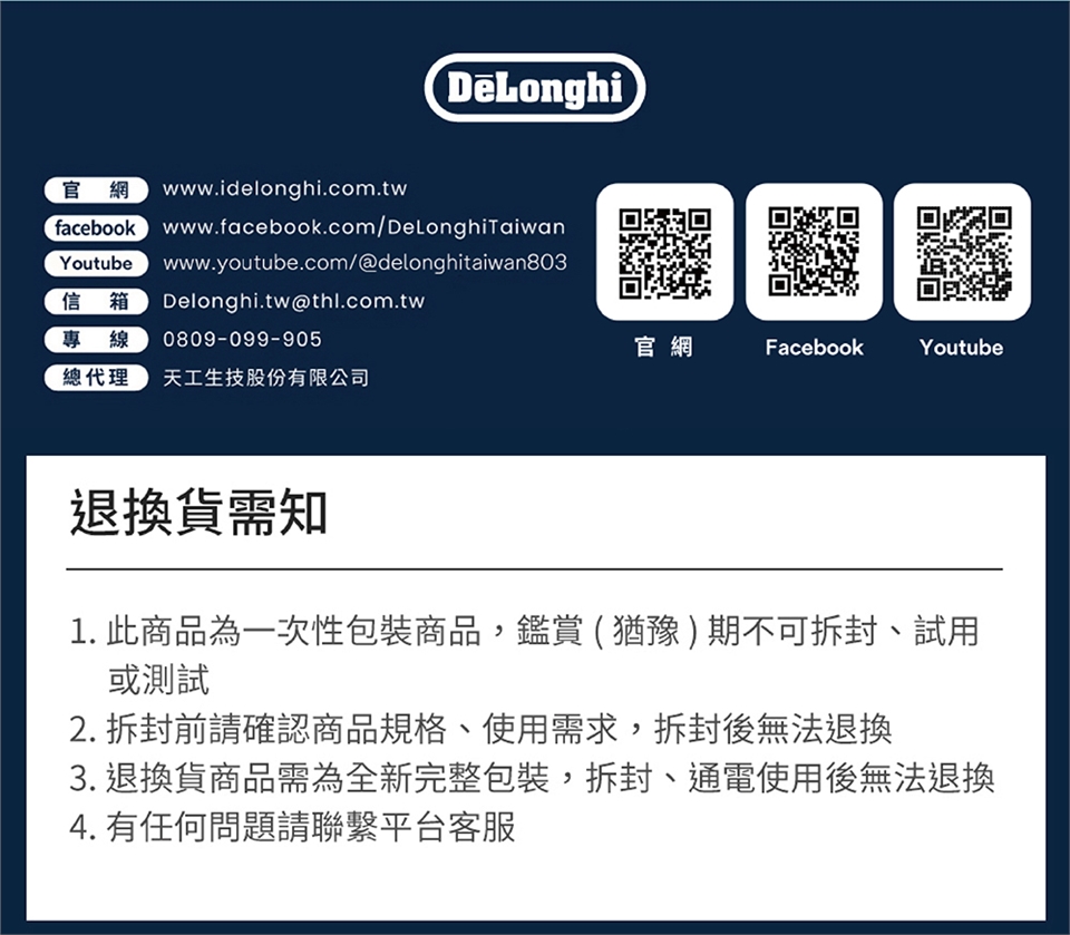 - 商品鑑賞期非試用期,若商品拆封、過水、使用,會影響退貨權益,敬請見諒。