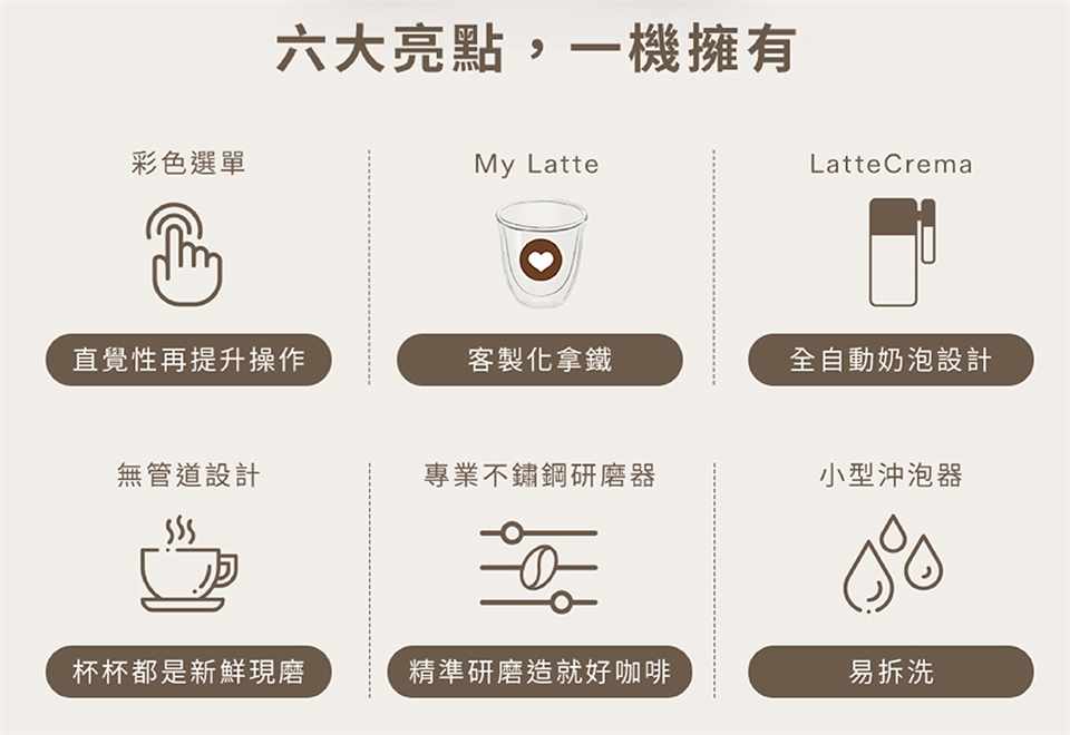 - 咖啡機出廠皆會抽樣檢測,有些微殘留咖啡粉或水痕皆為正常現象。