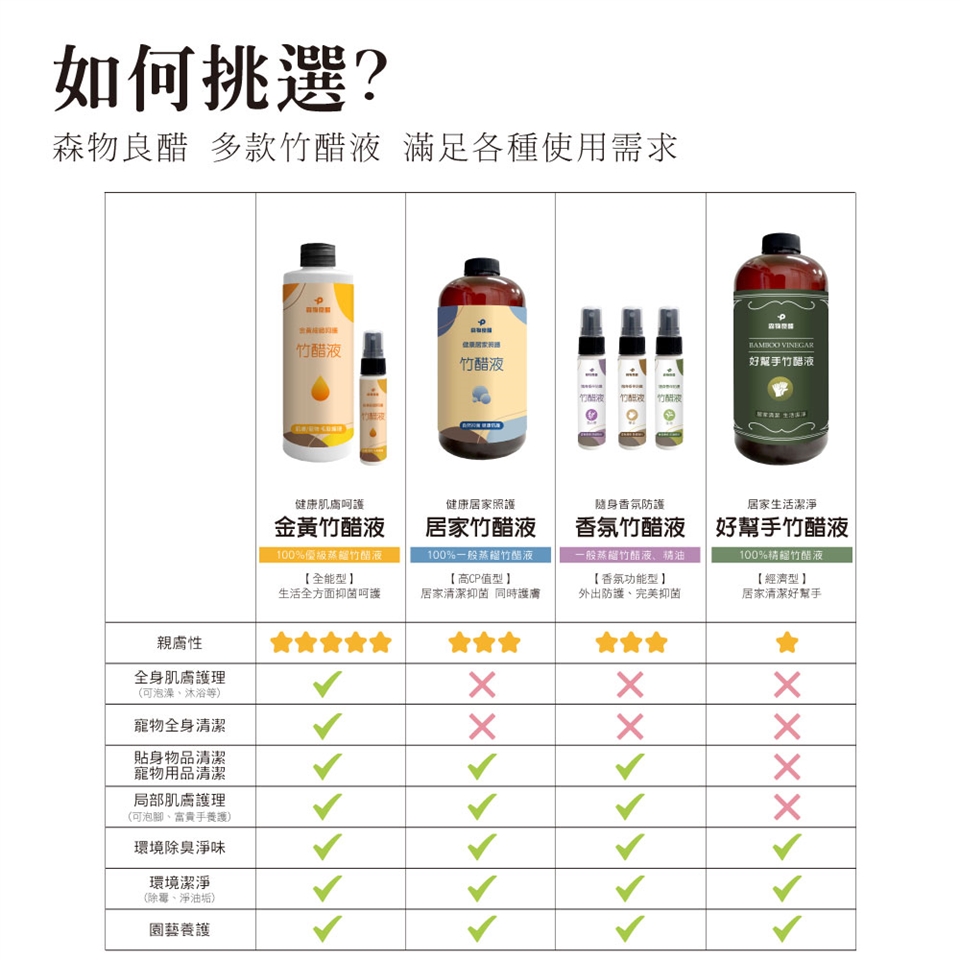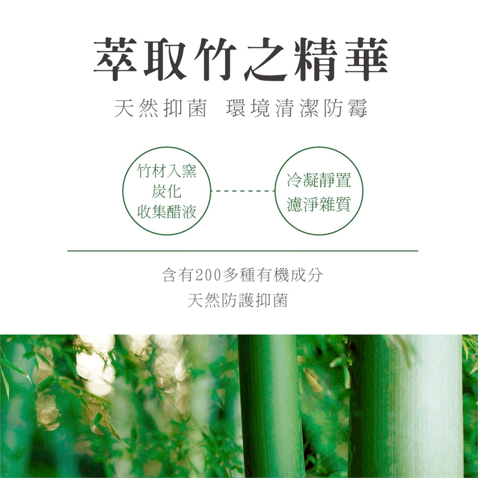 ■ 竹醋液含200多種有機成分,溫和抑菌。