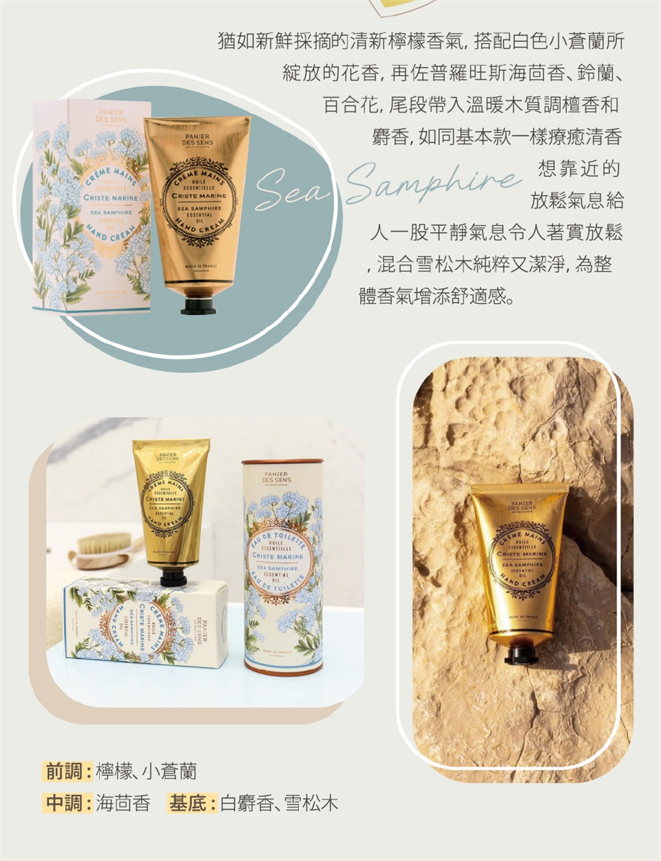 海茴香: 前調:檸檬.小蒼蘭、中調:海茴香、基調:白麝香.雪松木