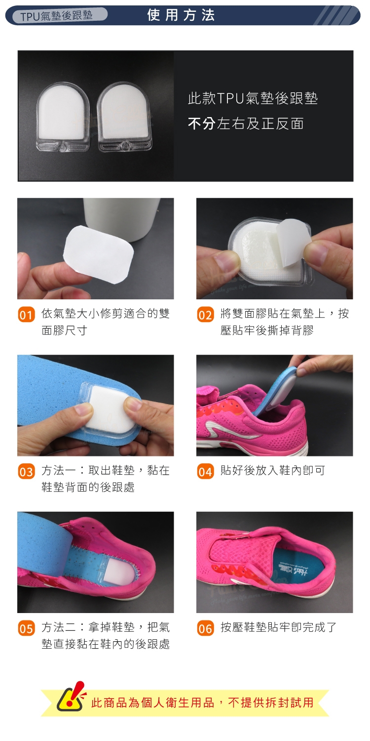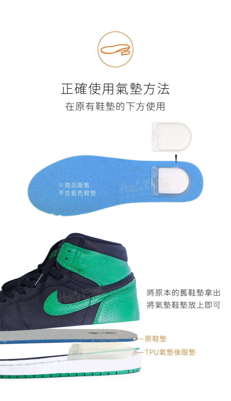 5.方法二:拿掉鞋墊,把氣墊直接黏在鞋內的後跟處