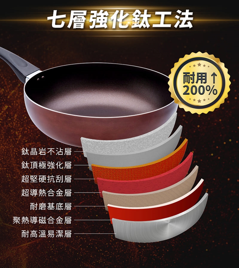 材質:鍋身/高級合金+高科技不沾材質(耐熱260℃)