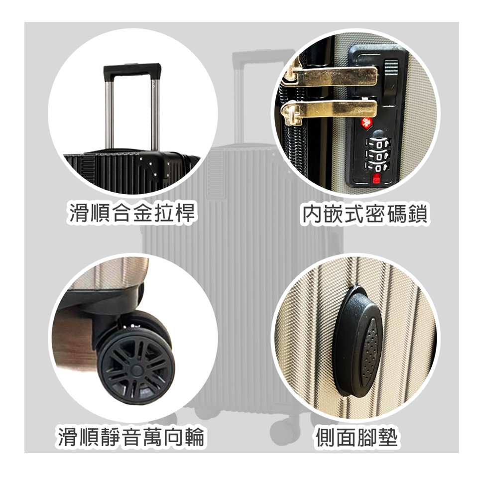 注意事項:行李箱出廠前均有全檢測試拉鍊 密碼鎖 與輪子的滑順度 輪子若有測試痕跡 為正常現象 非屬瑕疵範圍