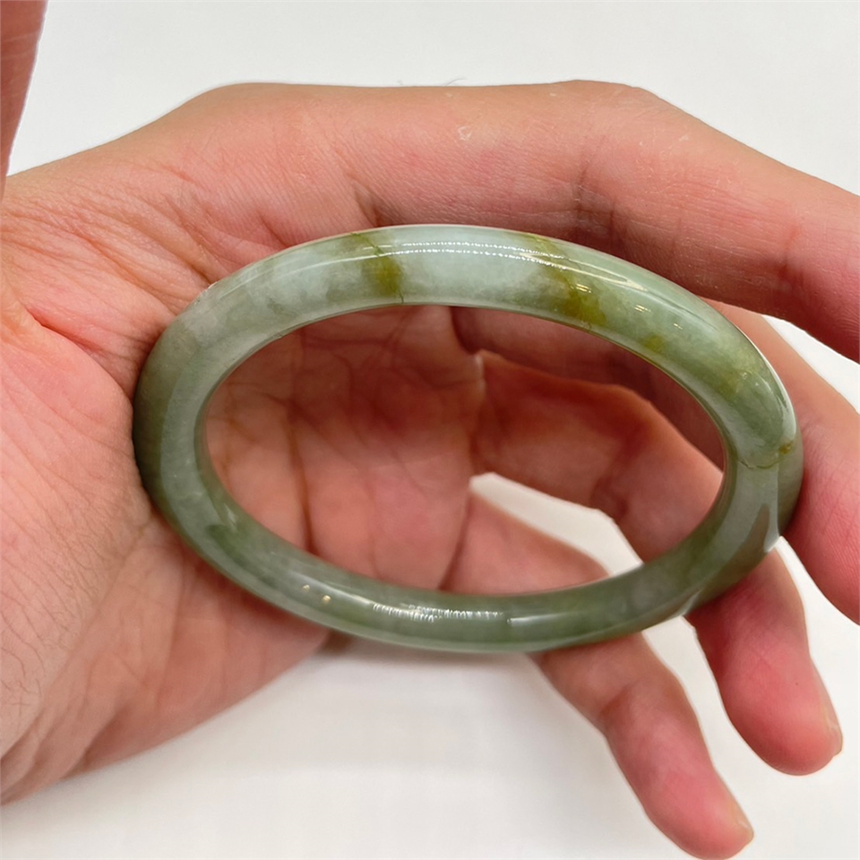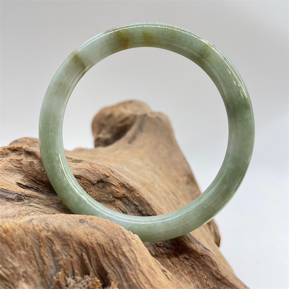 【肌容雪】天然緬甸A貨綠飄花 灑金翡翠手鐲 編號735 (鐲寬59.1mm #19號)