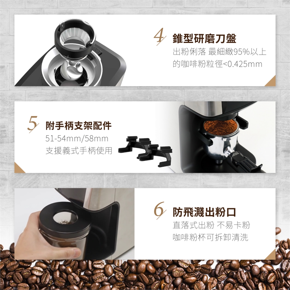 低速研磨:600rpm的低轉速磨豆方式,確保咖啡豆在磨豆過程中不會過熱,以維持其原始的風味和香氣。