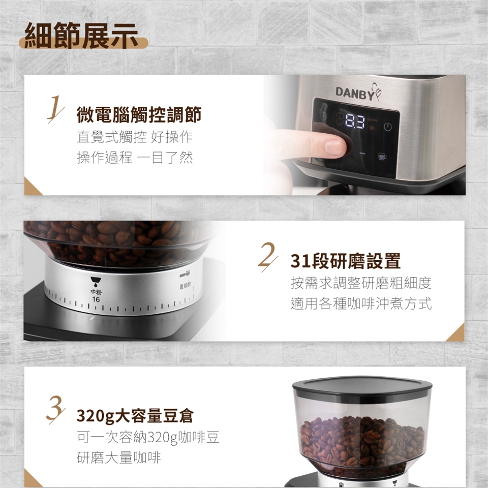 直觀操作:LED顯示面板與直覺性設計讓您輕鬆掌握研磨程度,減少磨豆的困難度。