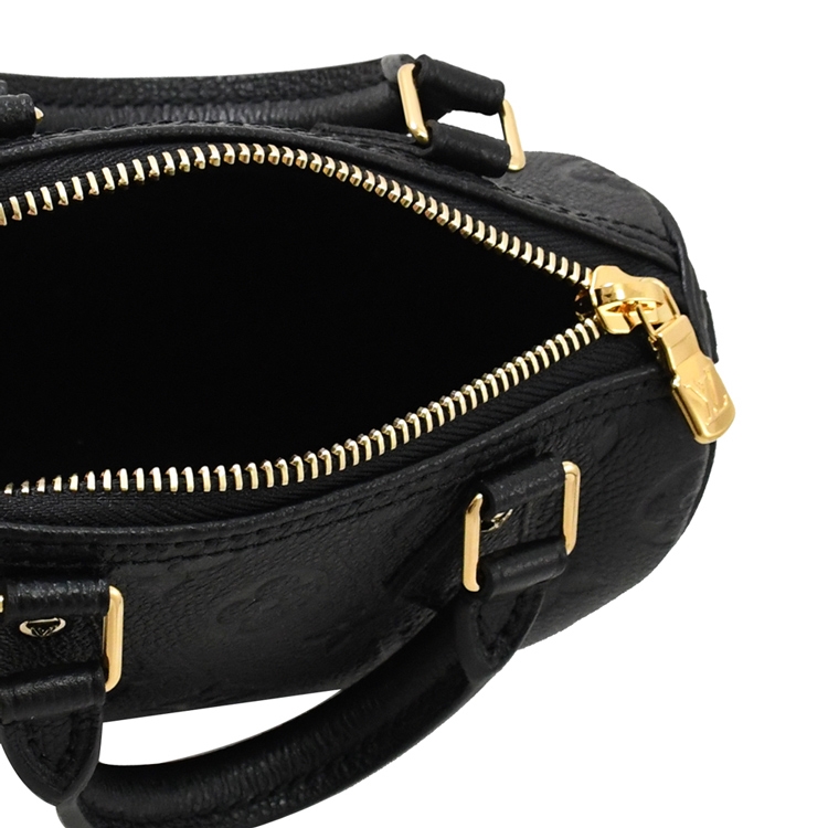 LV 這款Nano Speedy以迷你尺寸演繹經典的Speedy手袋,選用Monogram Empreinte粒面皮革製作,微纖維襯裡,拉鍊開口,整體手袋的設計線條簡潔,是一款時尚包款。