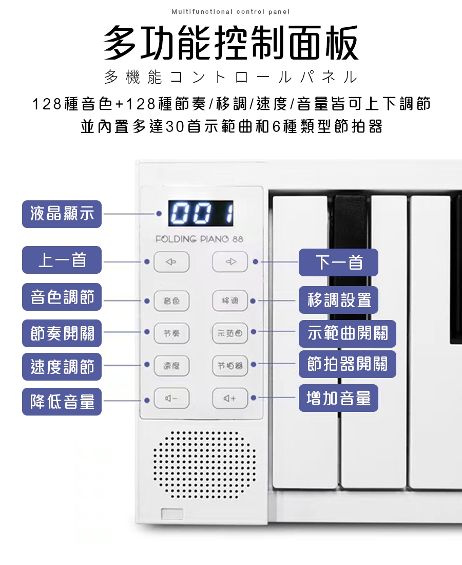 【方便操作】液晶面板多種功能控制,可調節曲目、音色、節奏、速度、音量