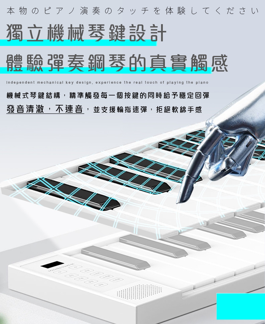【觸感真實】機械式琴鍵結構,支援輪指彈奏、發音清澈、拒絕軟綿手感