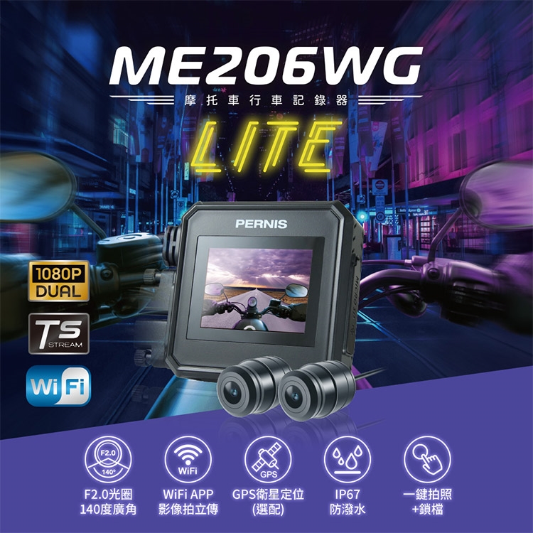品名:【Polaroid寶麗萊】鉑尼斯 ME206WG LITE 夜視前後雙鏡頭 機車行車記錄器