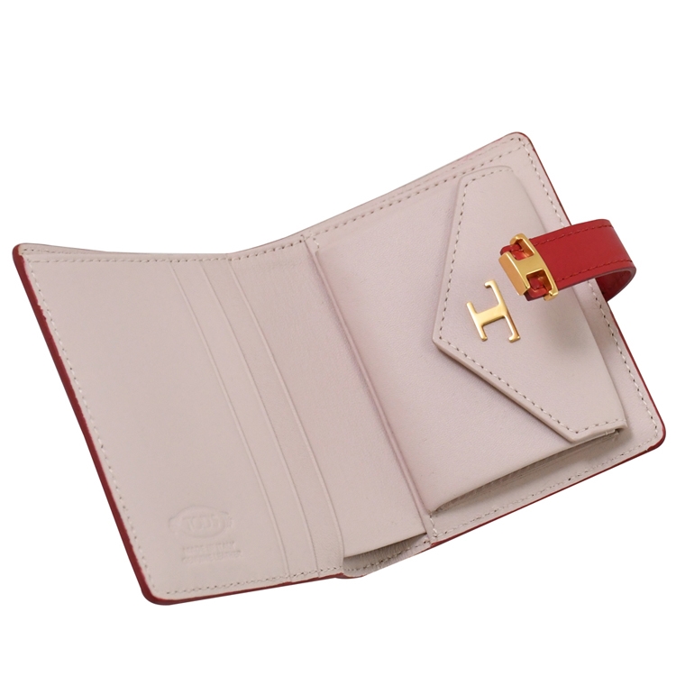 TODS 經典短夾,精緻手工車線,俐落簡約的造型,採用質感滑面牛皮材質,扣式開口/內有2卡片夾層+1扣式風琴袋+3貼袋+1鈔票夾層/外2卡片夾層供收納,展現簡潔都會概念,兼具典雅時尚氣質。