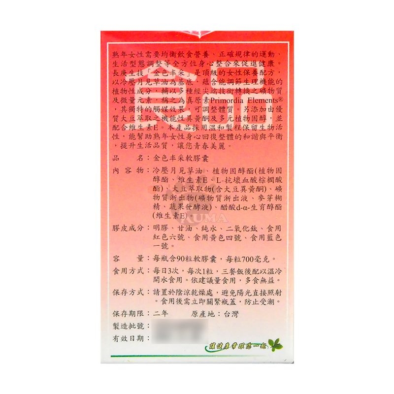 *內容物名稱:冷壓月見草油、植物固醇酯、大豆萃取物…等詳見外包裝標示