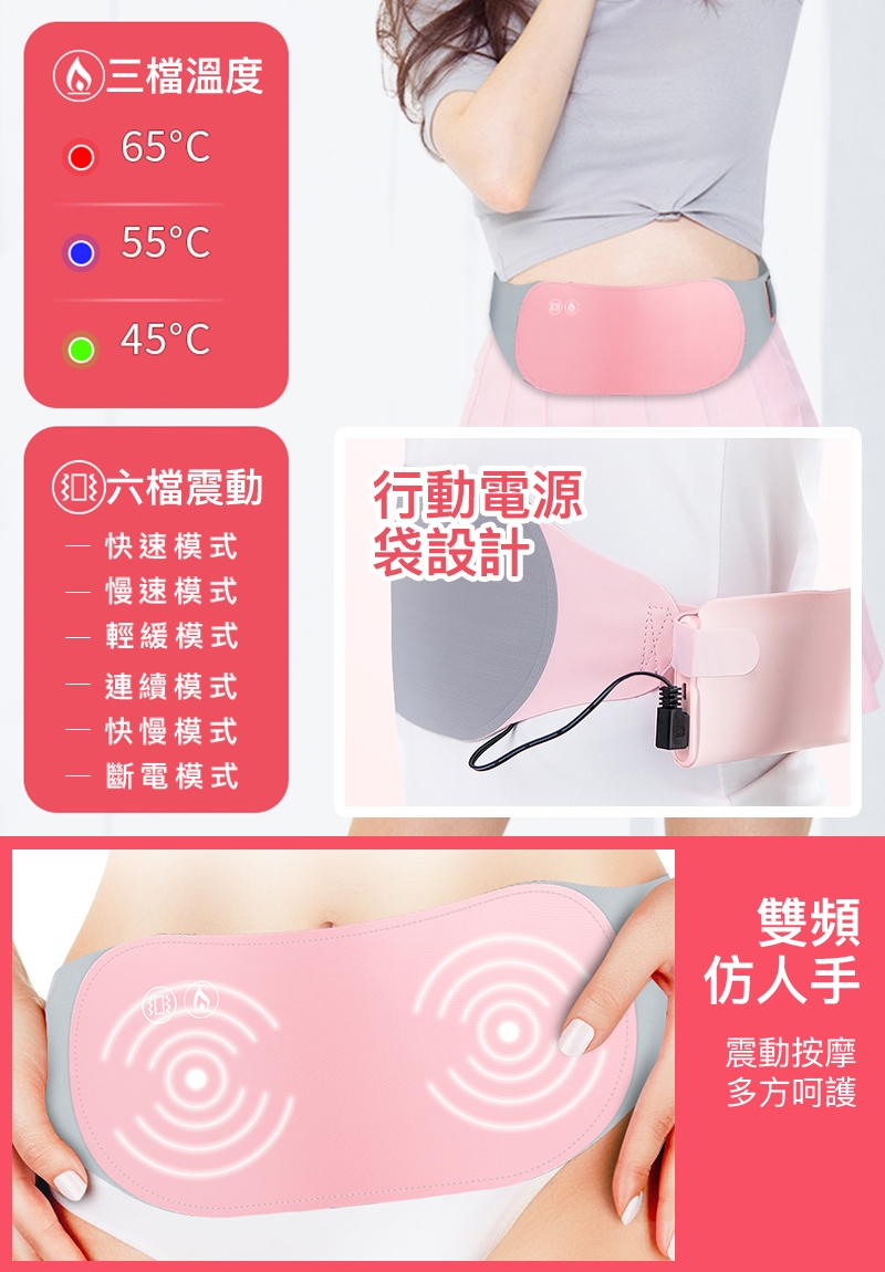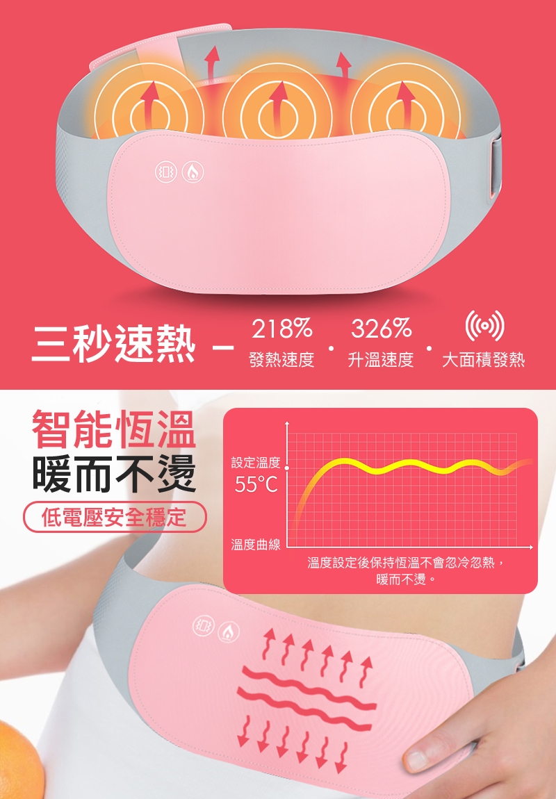 ➤三檔溫度,65°C經痛福音、55°C經期護理、45°C日常護腰